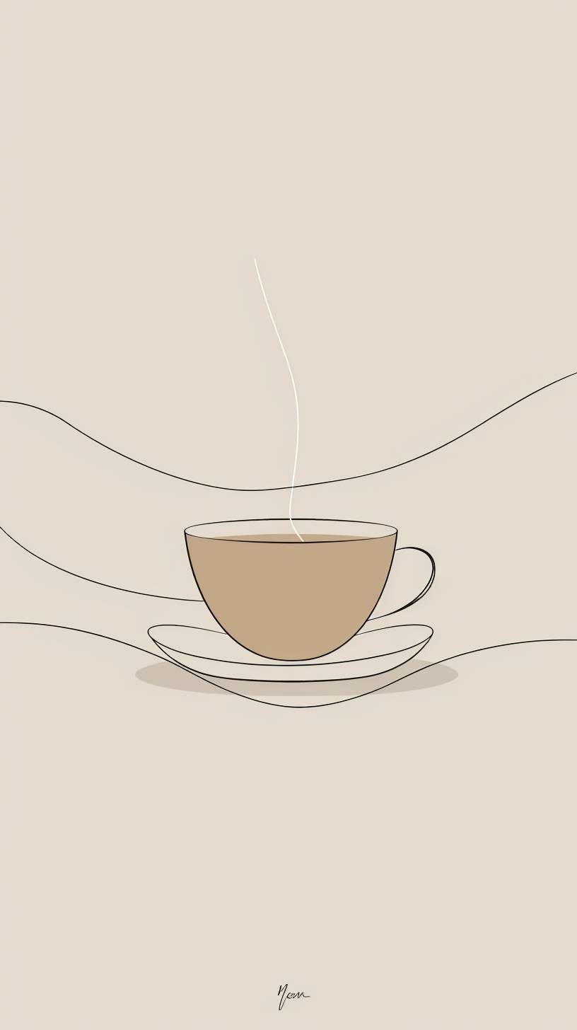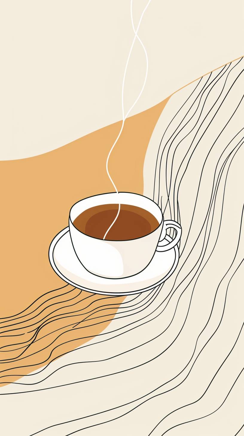 A cup of coffee, in minimalist details, design in lines, vector, white background, 8k --ar 9:16 --style raw --v 6.0