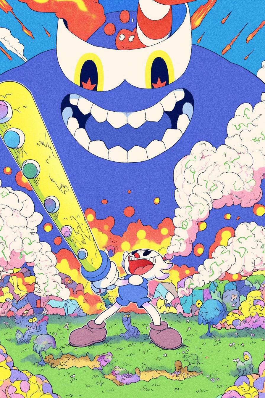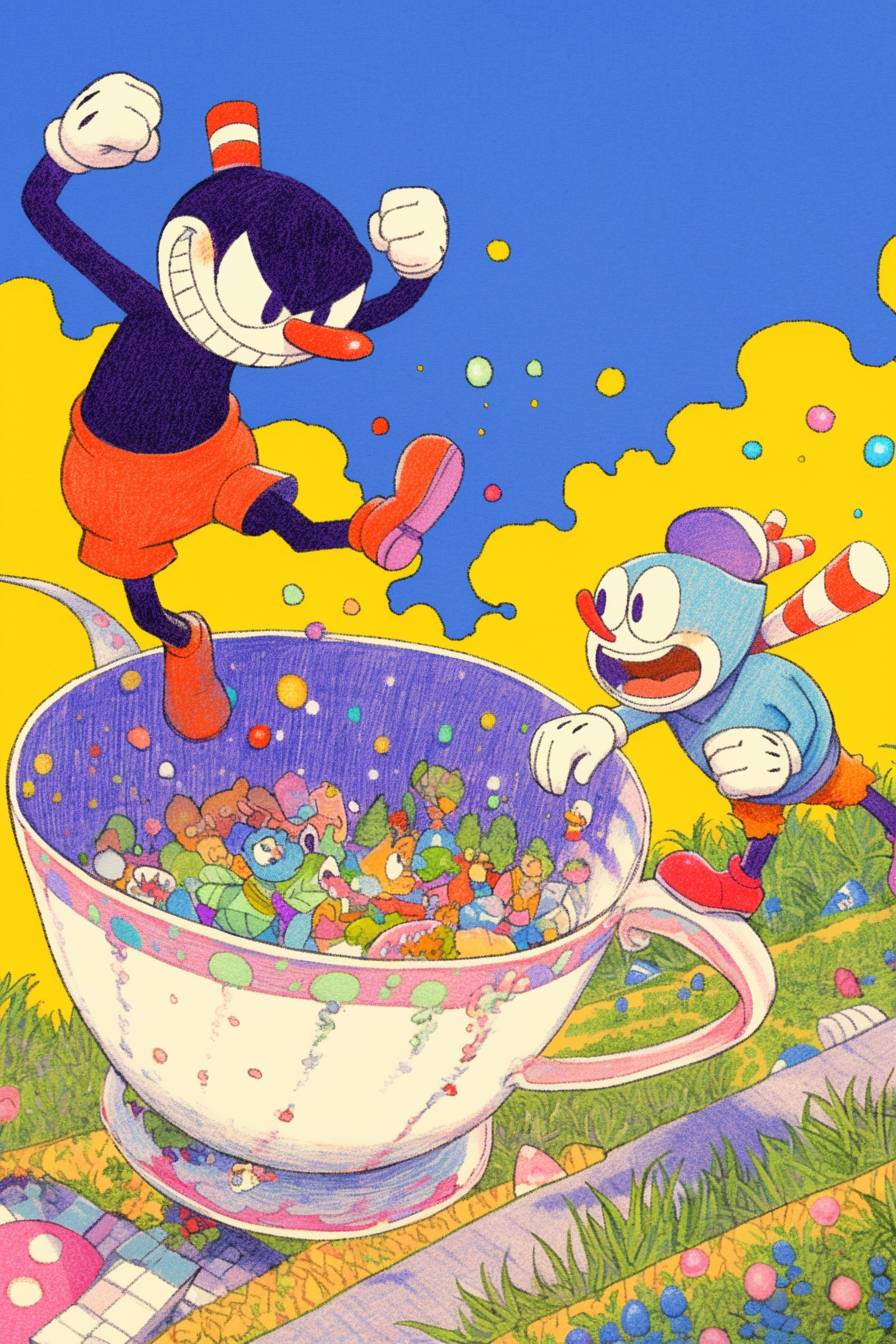 컵헤드와 머그맨이 빈티지 만화 스타일로 독특하고 상상력이 풍부한 보스와 싸우고 있는 시각적으로 놀라운 세계.