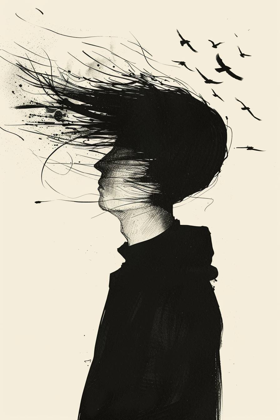 알레산드로 고타르도 스타일의 인물, 잉크 아트, 측면 보기