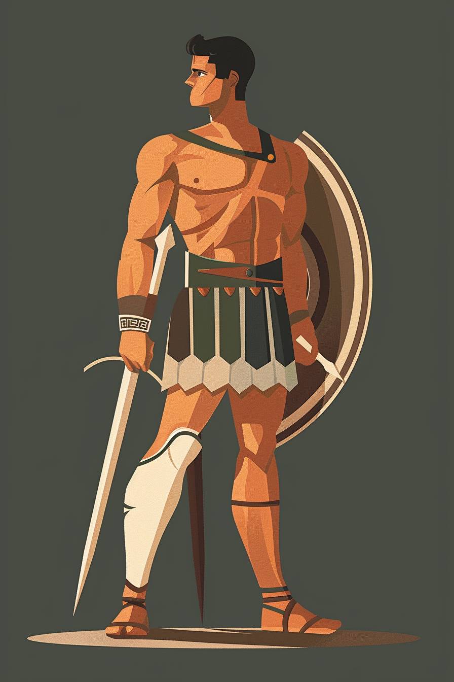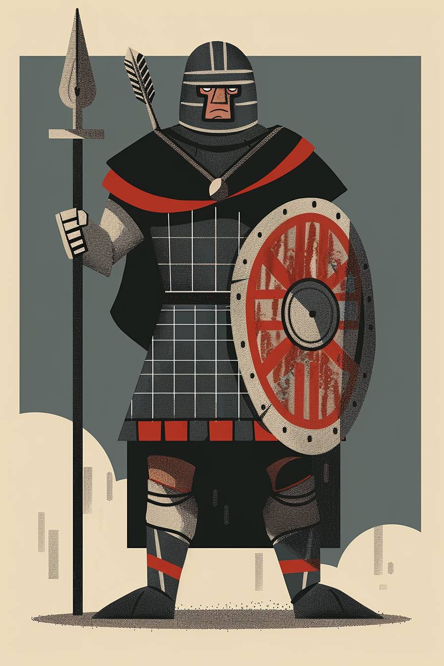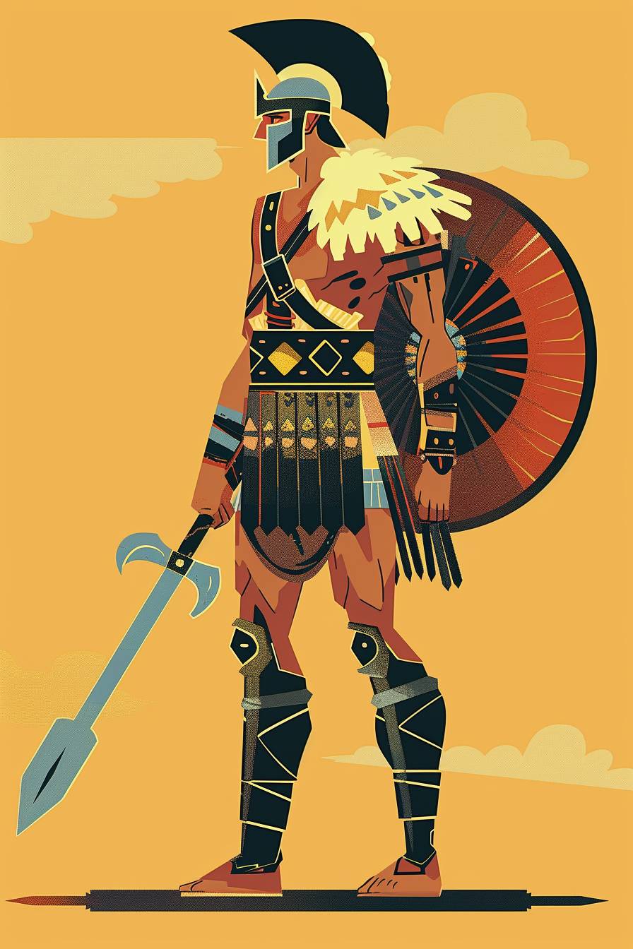 in style of Patrick Caulfield, warrior character, full body, flat color illustration --ar 2:3 --v 6.0