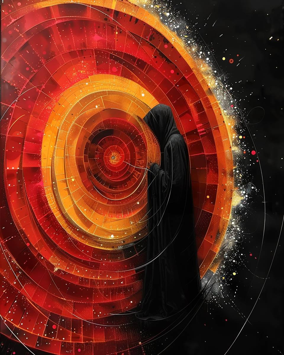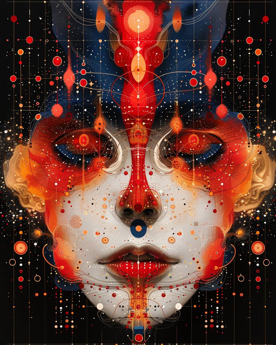 Evangelical quantum theory, string art surrealism, aura --ar 4:5 --sref 3999999931 3999989613 17198613 3999999504 --stylize 1000 --v 6.0
