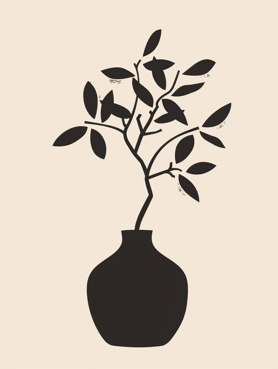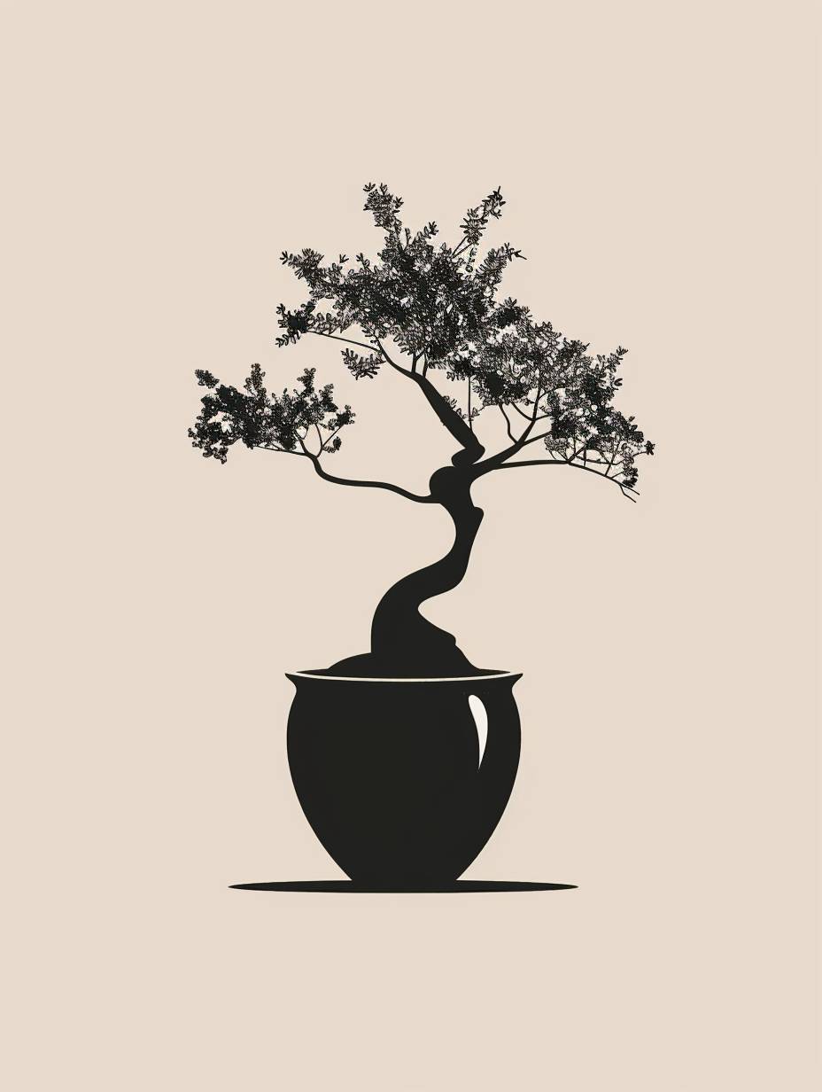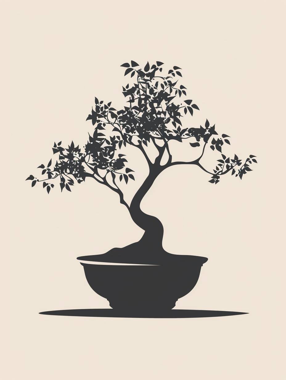 minimalistic logo of a young bonsai tree in a vase, vector, monochrome --ar 3:4 --v 6.0