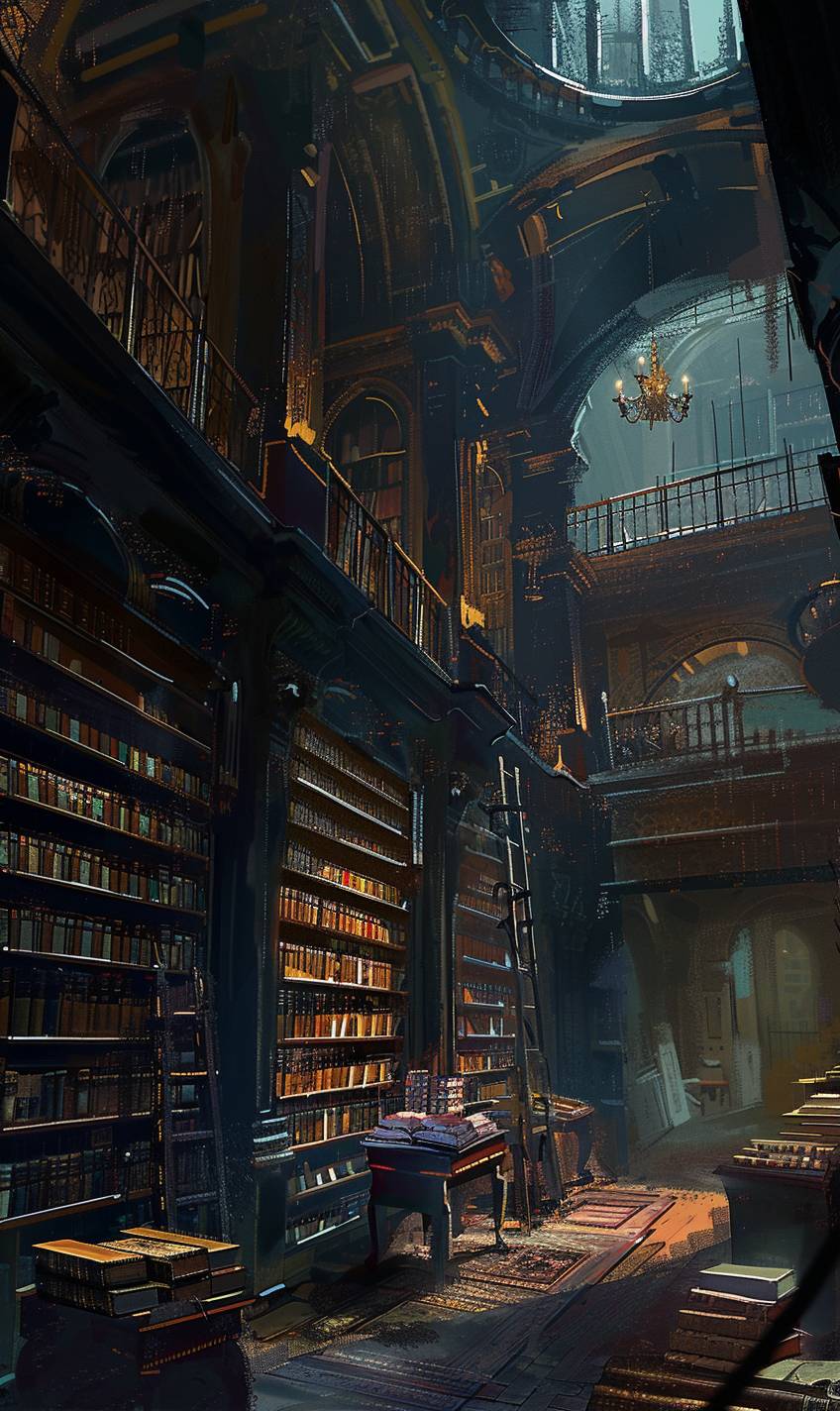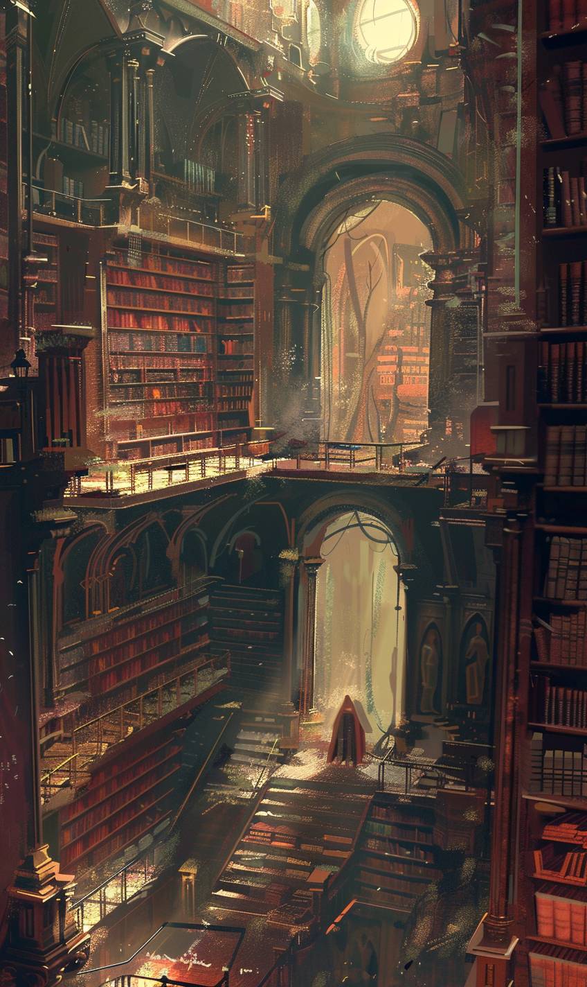 in style of sparth,Magical library filled with ancient books --ar 3:5 --v 6.0