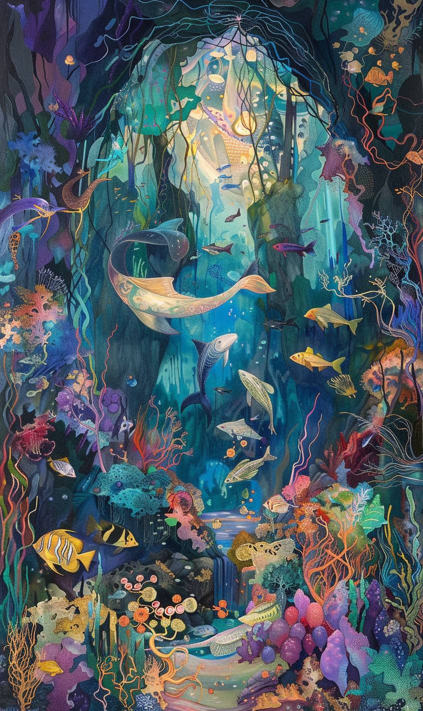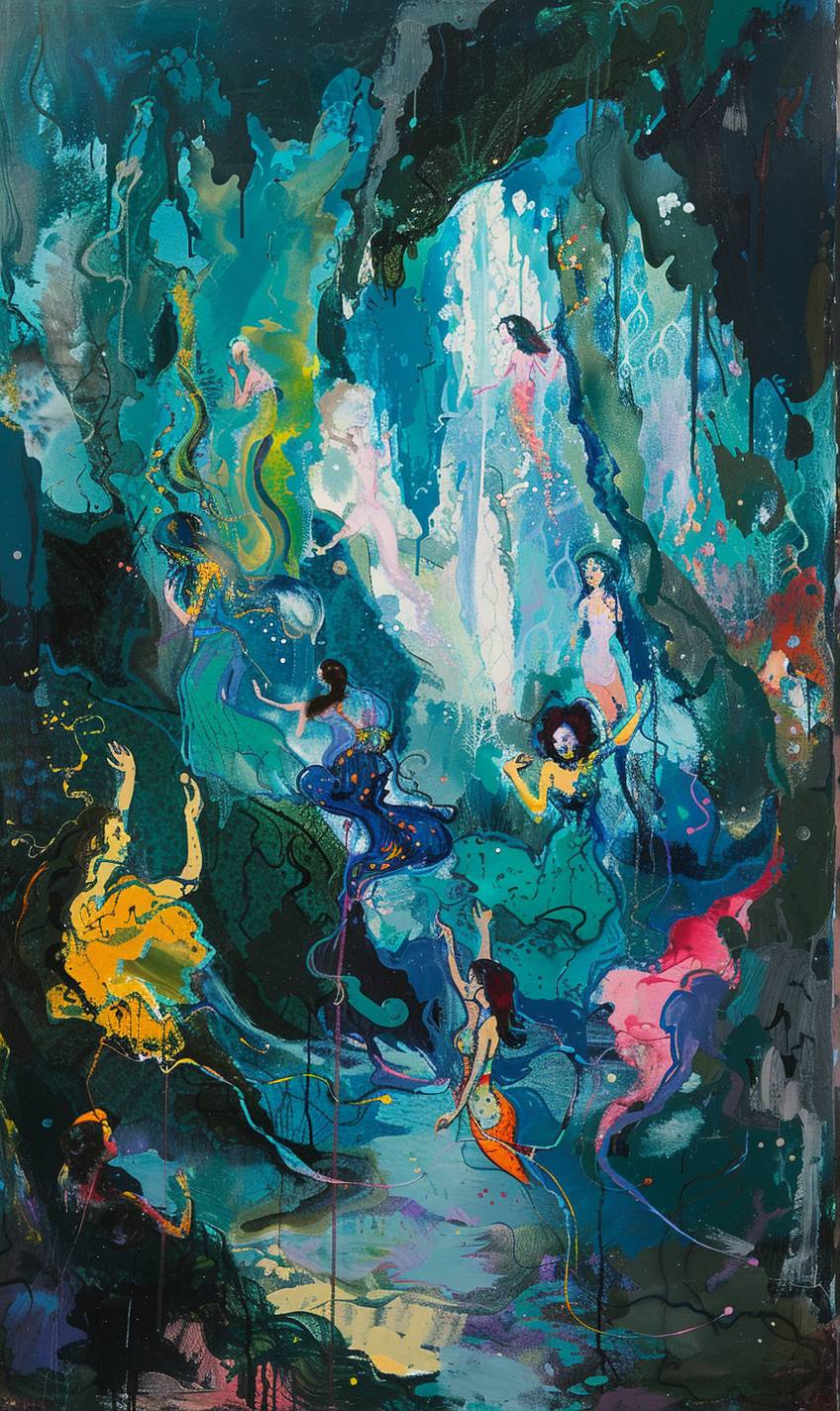 in style of Isaac Maimon,Underwater cavern with magical merfolk --ar 3:5 --v 6.0