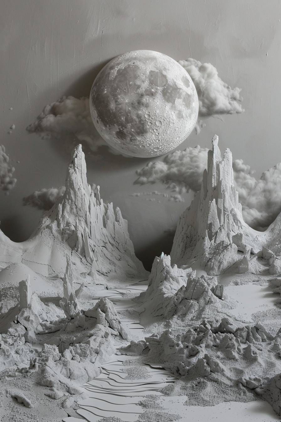in style of Daniel Arsham,Lunar eclipse casting shadows across the land --ar 2:3 --v 6.0