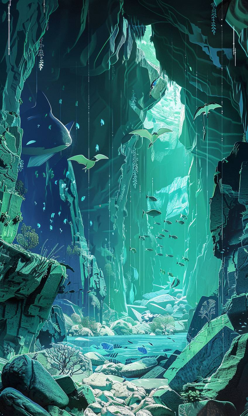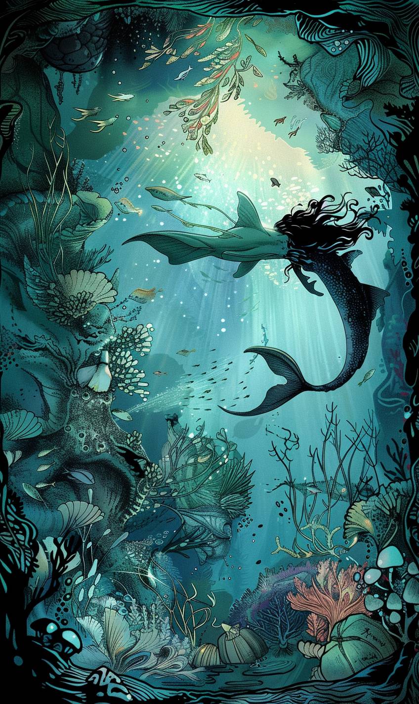 패트릭 나겔 스타일의 수중 동굴과 마법의 인어