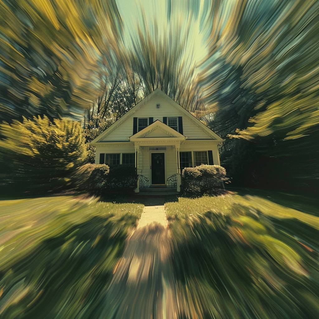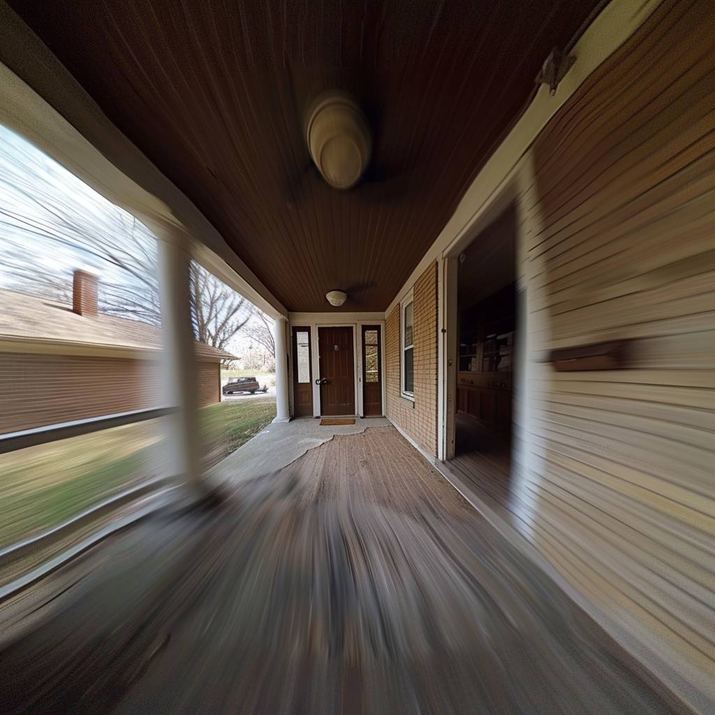 A first-person POV shot rapidly flies towards a house's front door at 10x speed. --v 6.0