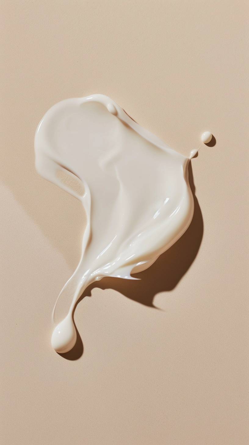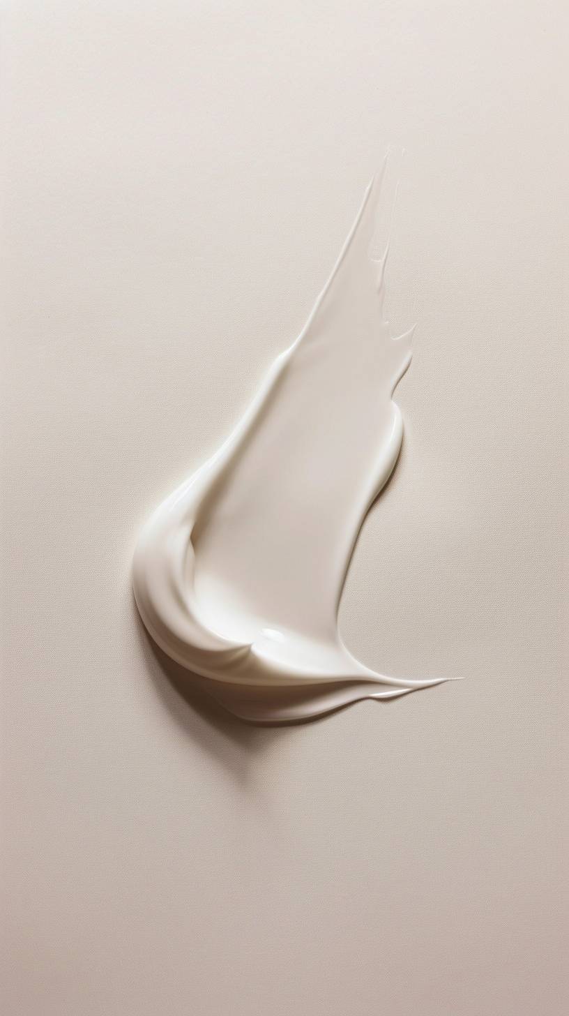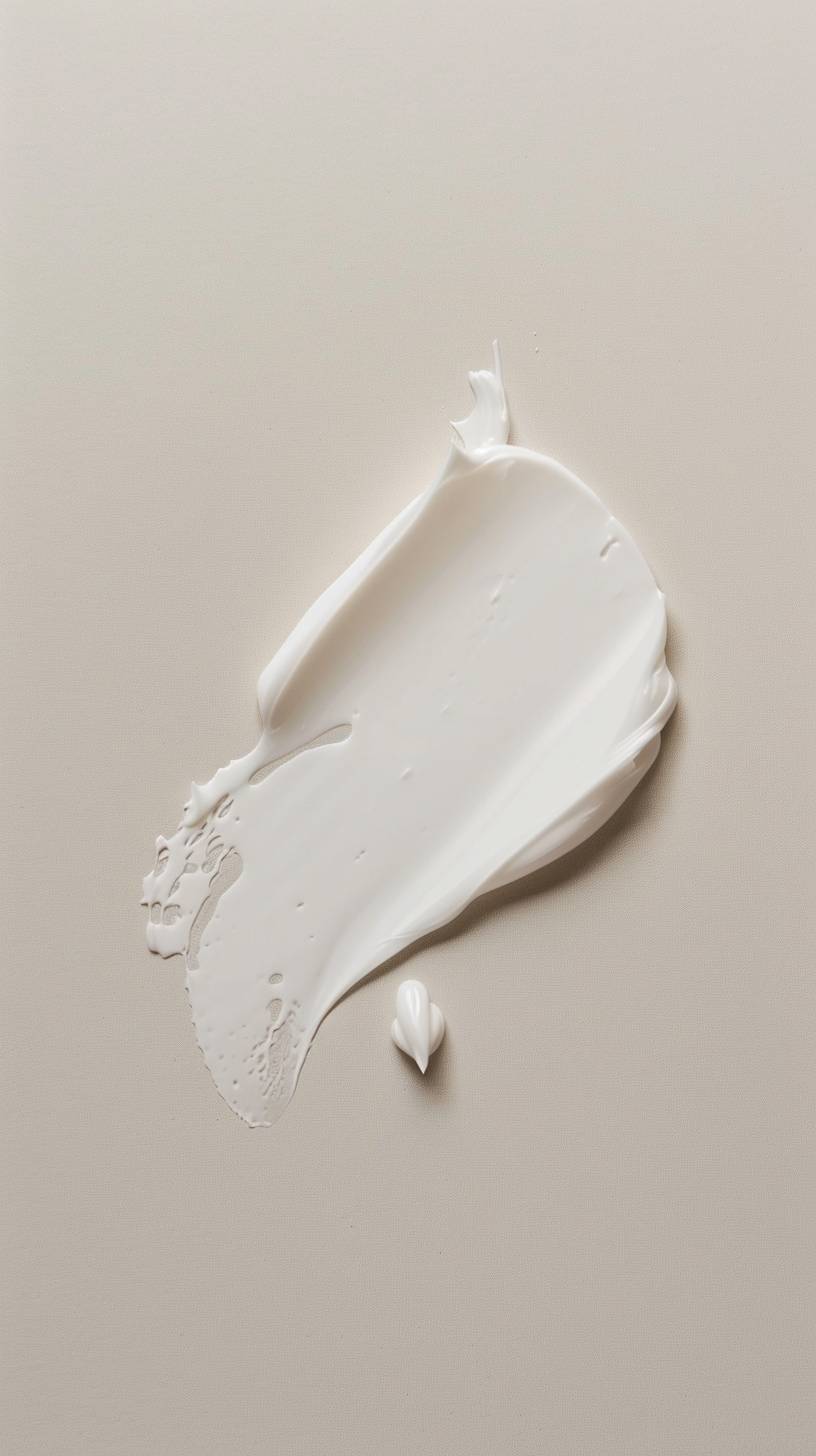 단순한 배경에 놓인 고해상도의 흰색 크림 샘플, 깨끗한 배경에 고립되어 있습니다. 질감은 광택이 있으며 미세한 광택이 있어 우아한 외관을 제공합니다. 강조를 위해 한쪽에 크림의 한 방울 또는 소량이 배치되어 있습니다. 이 프레젠테이션은 최소한의 편집 스타일로 얼굴 피부 관리 제품의 크리미한 특성을 강조합니다.