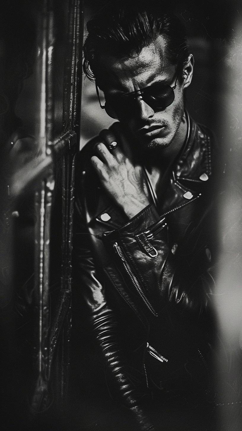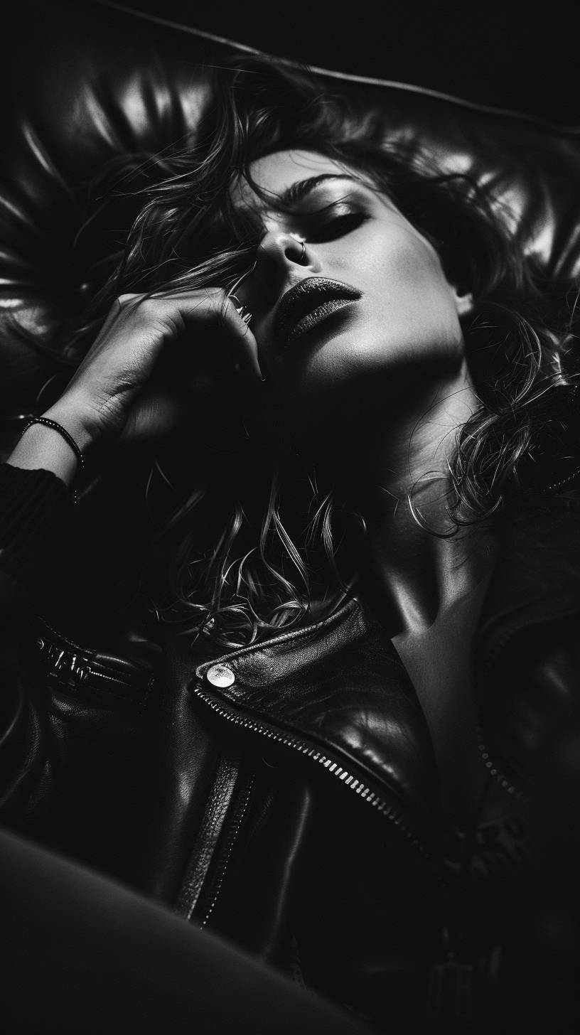 Analog photography , Defiant Model, leather, noir --ar 9:16 --p a59ln1m --v 6.0