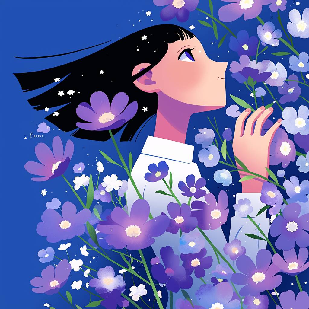 Galaxy, Girl, Flowers --sref 783 --niji 6