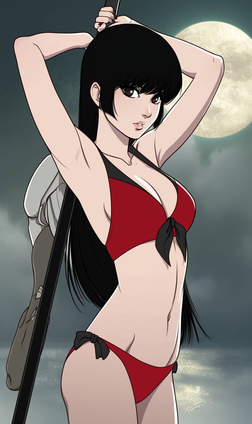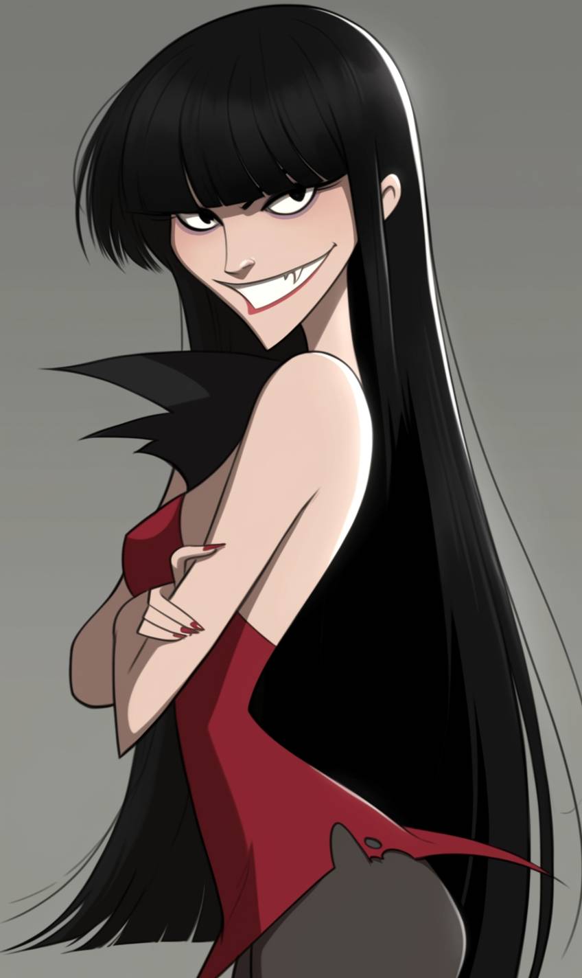 A simple drawing of Vampirella, in the style of Allie Brosh with simple lines, flat colors and a stick figure, minimalistic, simple background --ar 3:5 --style raw --sref 2581773485 --niji 6