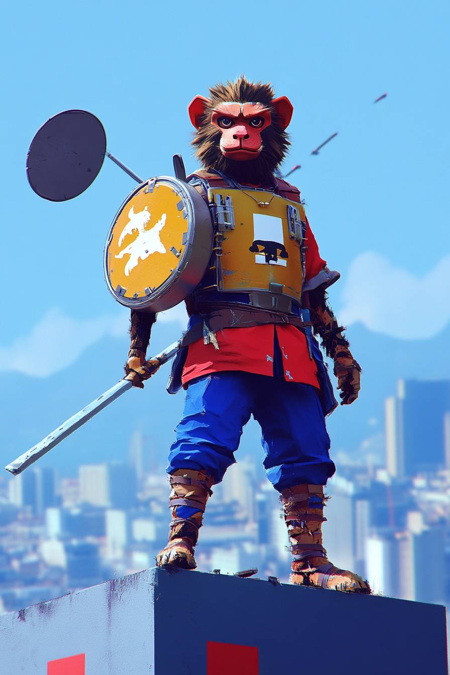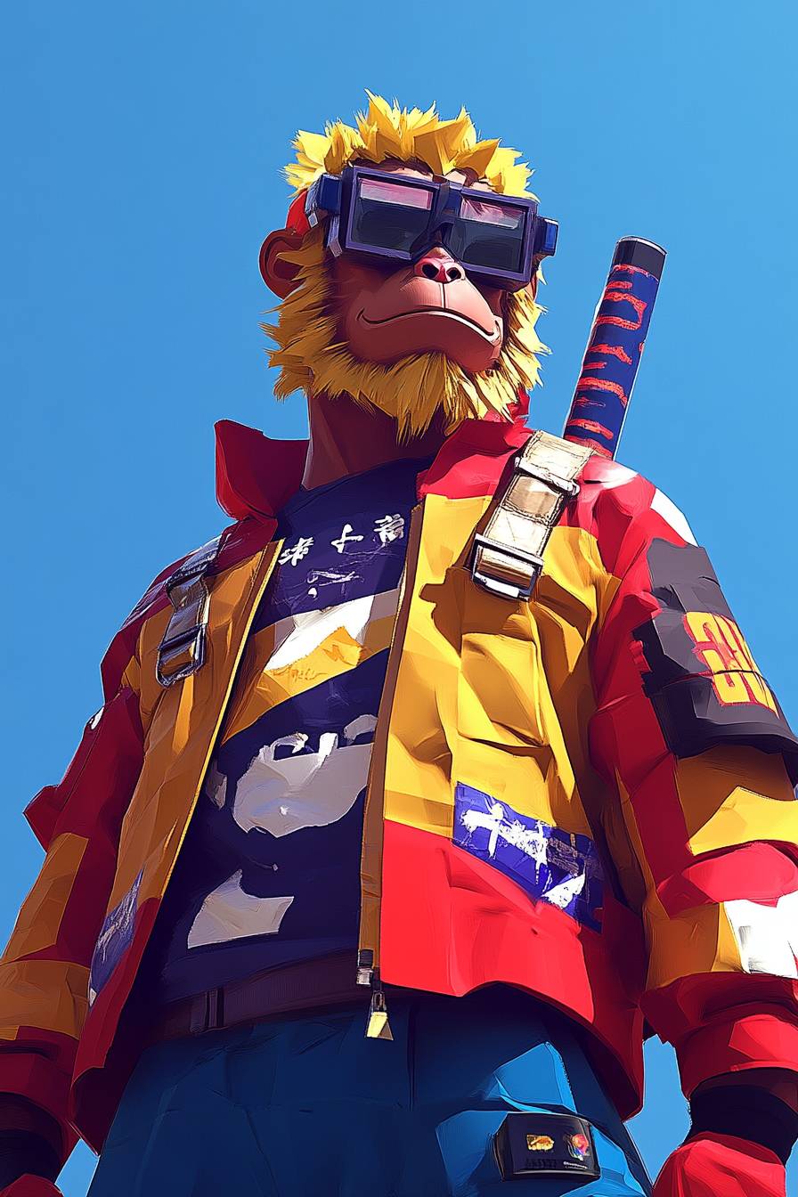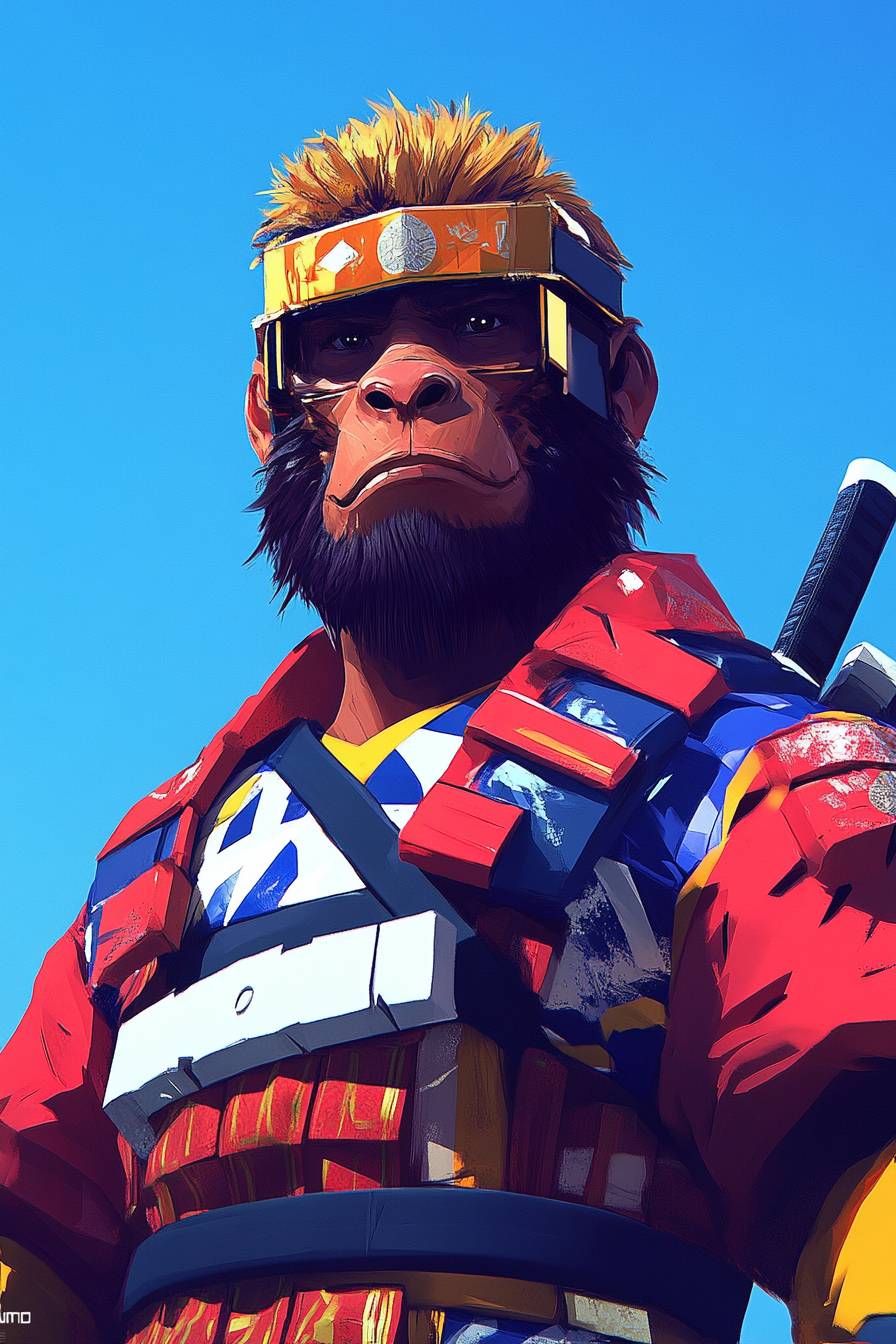 journey to west Sun WuKong with his iconic armor, extreme angle perspective --sref 2870671586 --sw 500 --v 6.1 --stylize 300 --ar 2:3