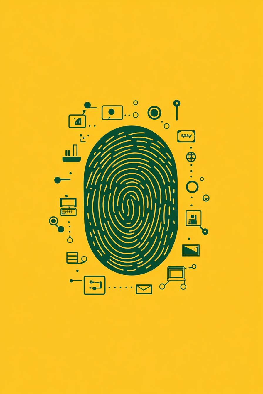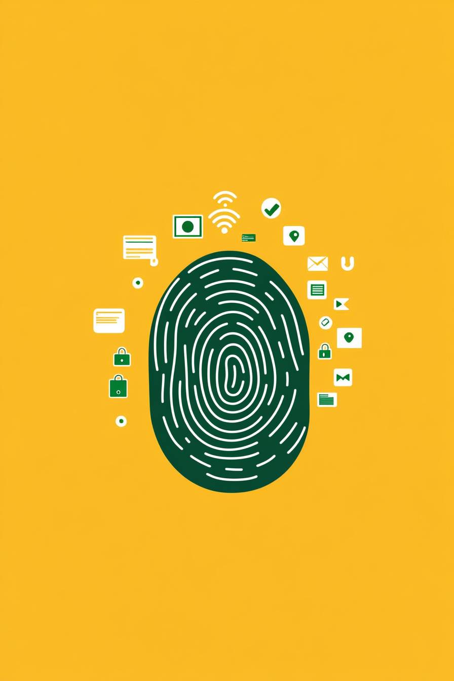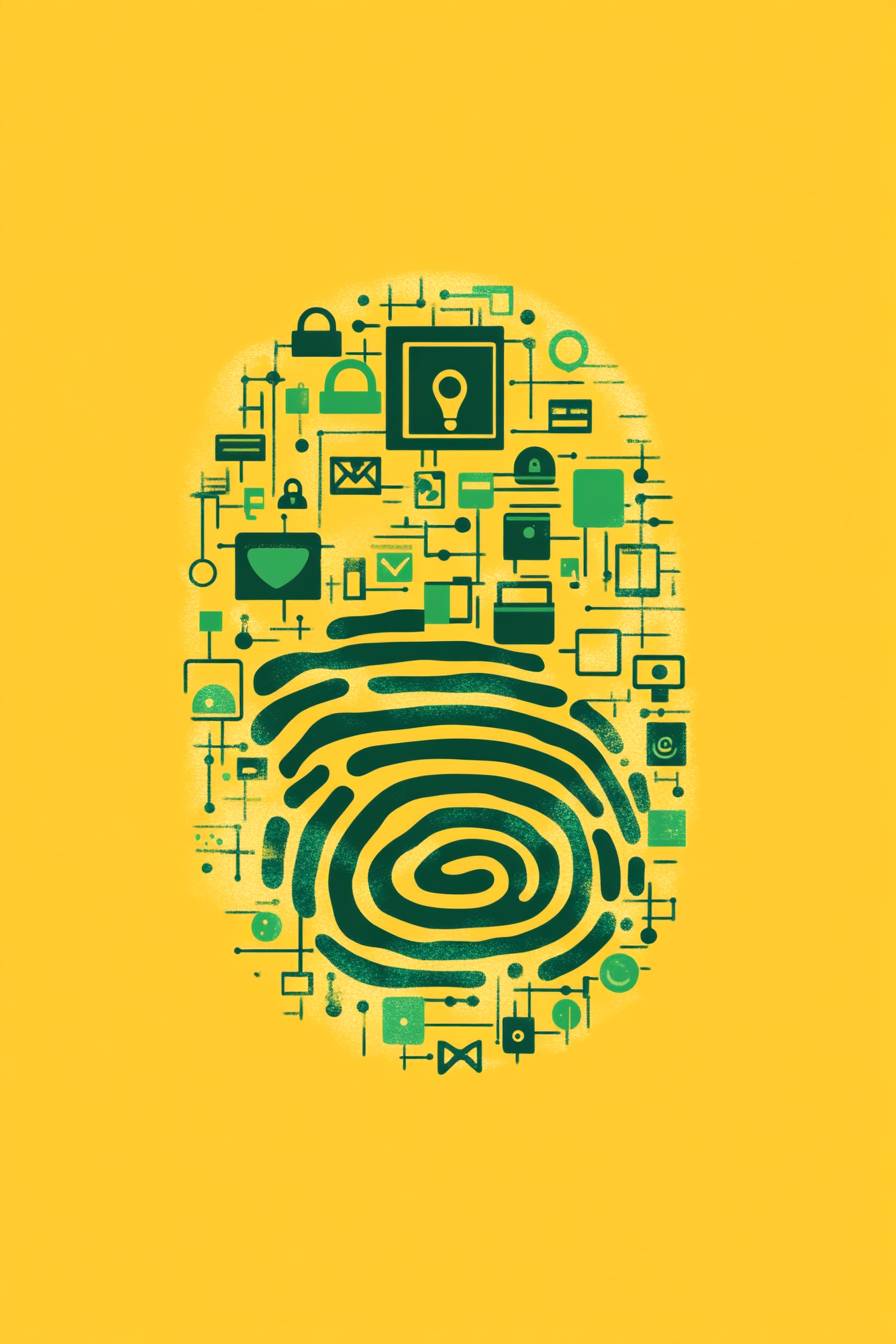 a logo of a finger print with internet symbols and green, echology, susteinability, flat yellow backgrund, flat design, --ar 2:3 --v 6.1