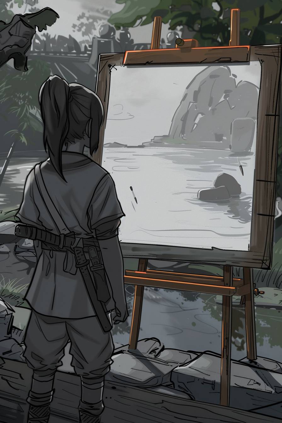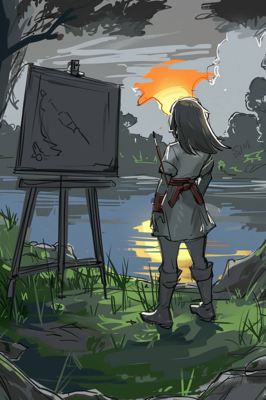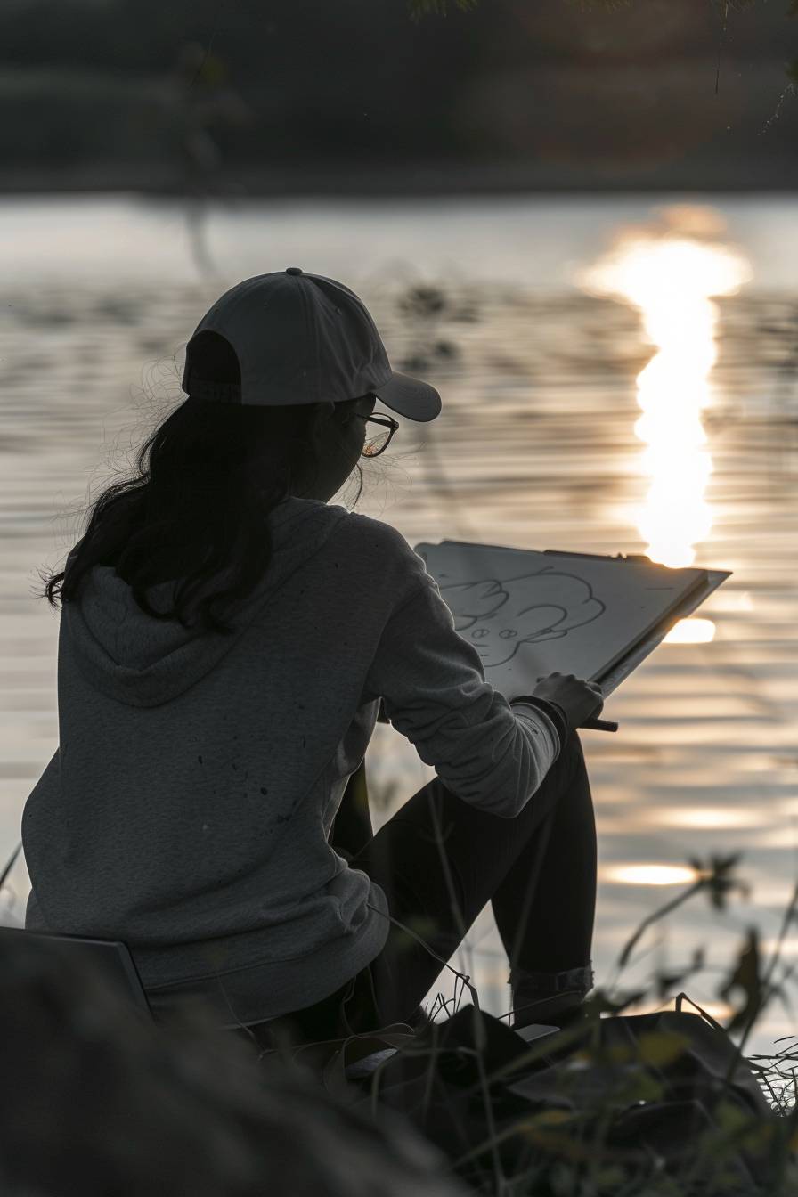 Sakura is painting a sunset by the lake. --ar 2:3 --sref 5 --v 6.0