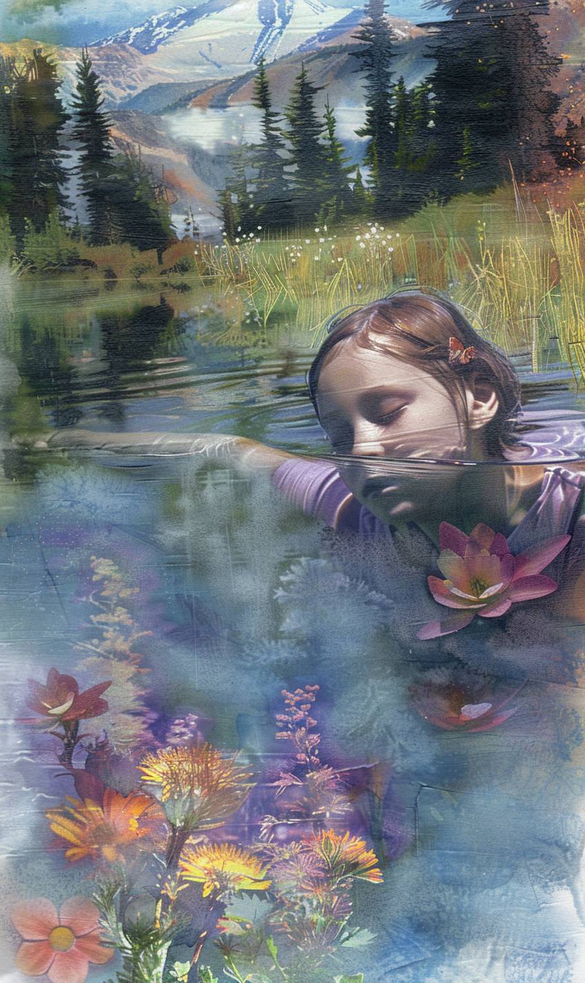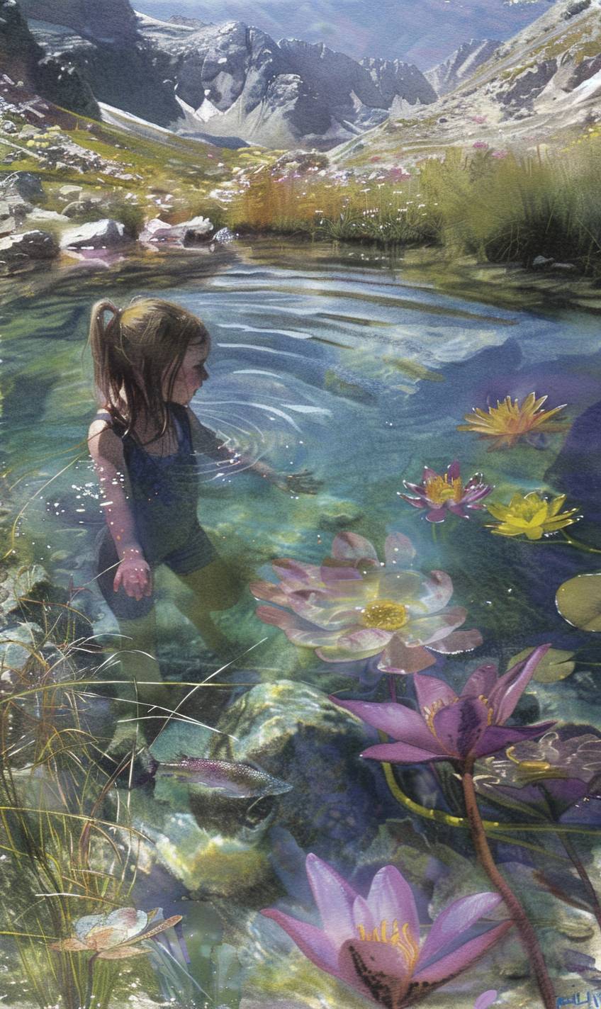 Nao is swimming in a clear mountain lake. --ar 3:5 --sref 160 --v 6.0