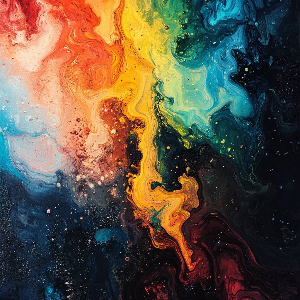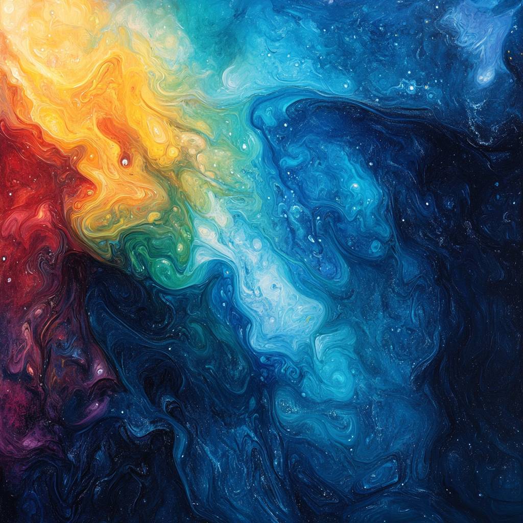 [주제]와 기분 기반 화학을 연결하는 예술 작품, [색상]은 평온함을, [색상]은 반응성을 나타냅니다.