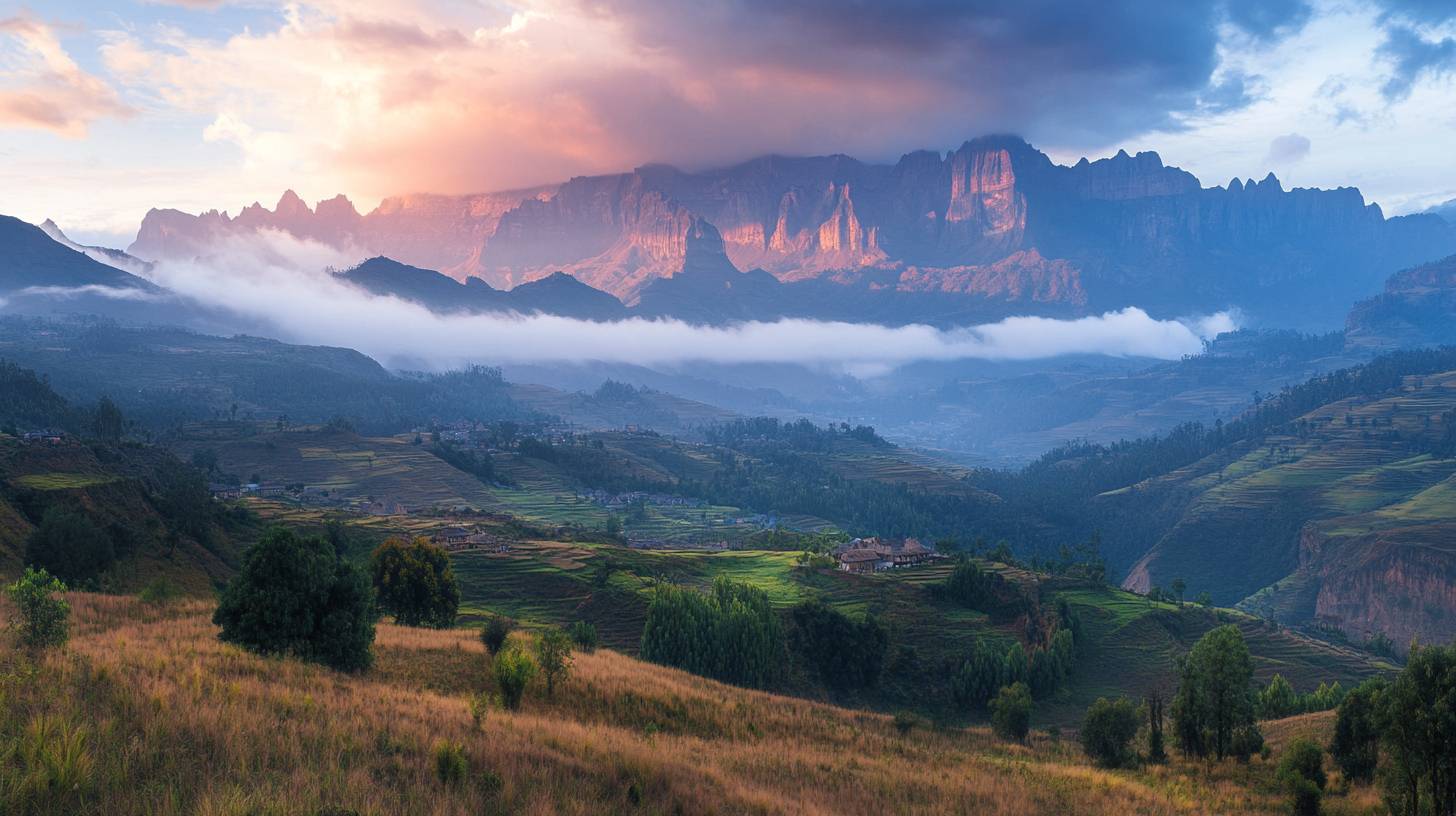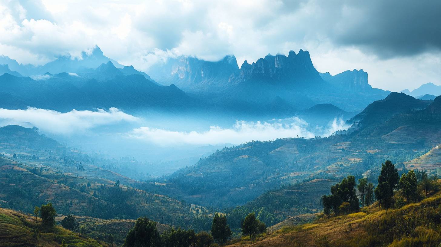 photo of madagascar mountains, ethereal lighting --ar 16:9 --style raw --stylize 200