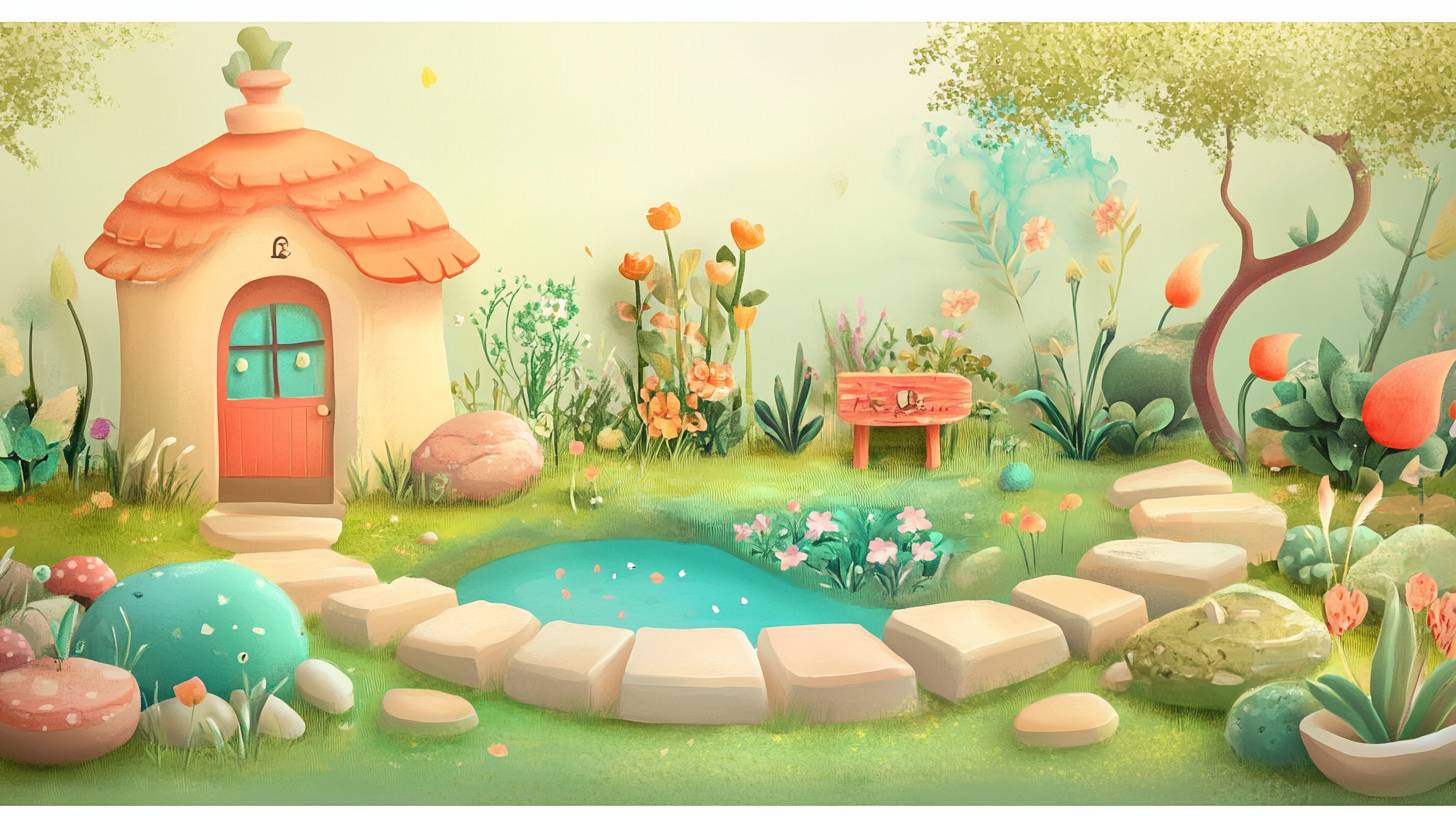 illustration of a small garden --ar 16:9 --sref 2228797871