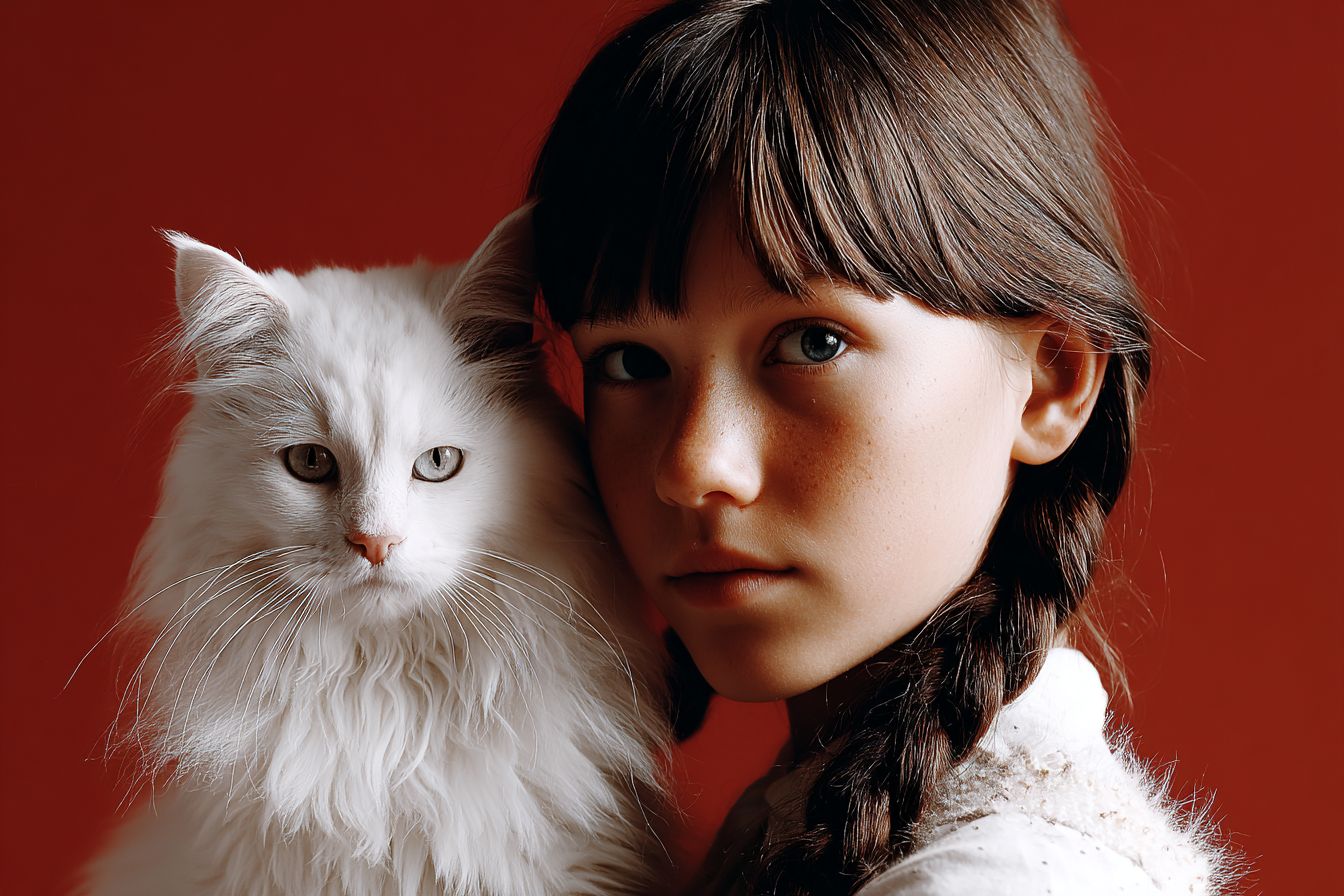 젊고 아름다운 소녀와 귀여운 솜털 고양이