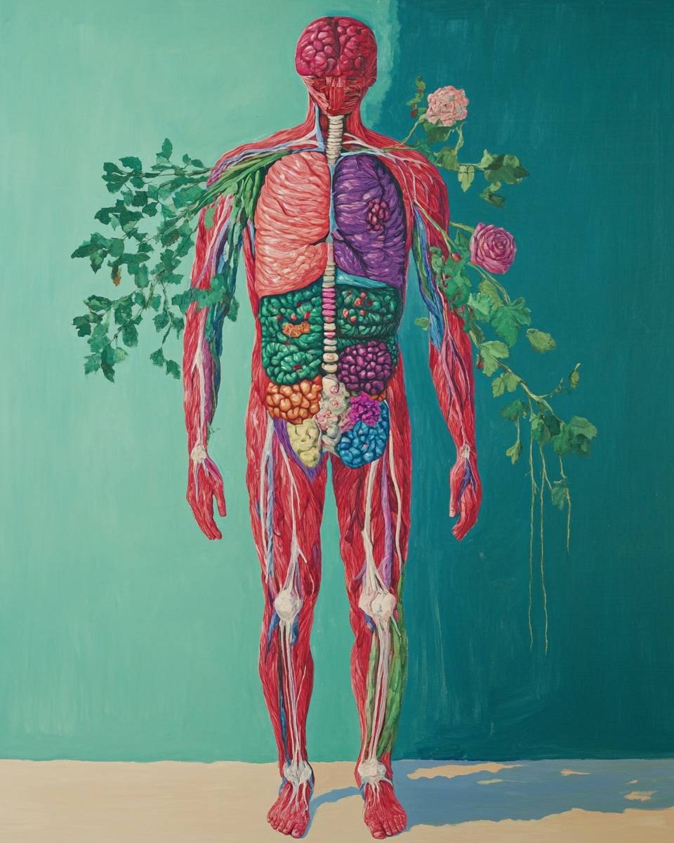 uma pintura dos orgãos do corpo humano por david hockney --ar 4:5 --v 6.1