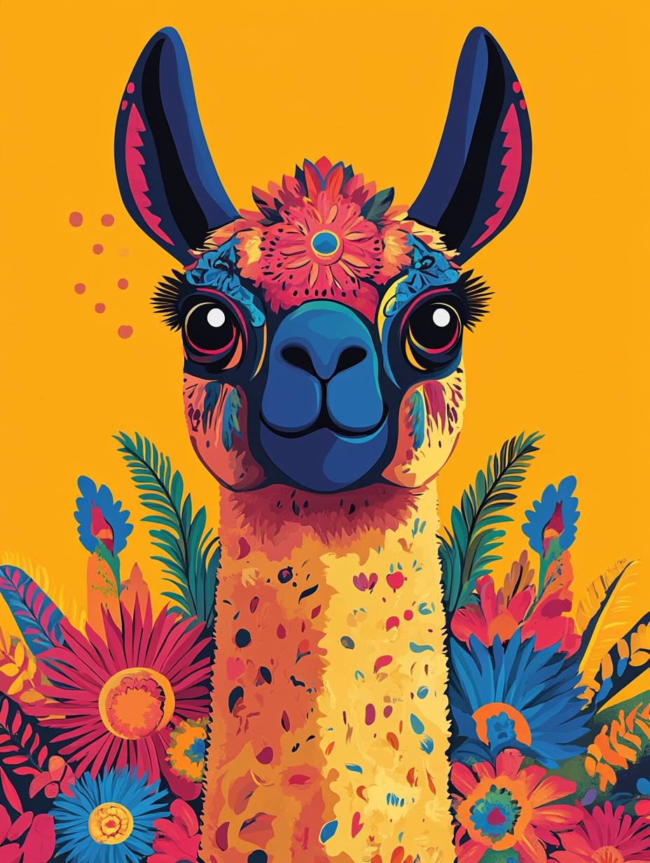 다채로운 멕시코 직물 그래픽 디자인, 주제는 미니멀리스트 알파카