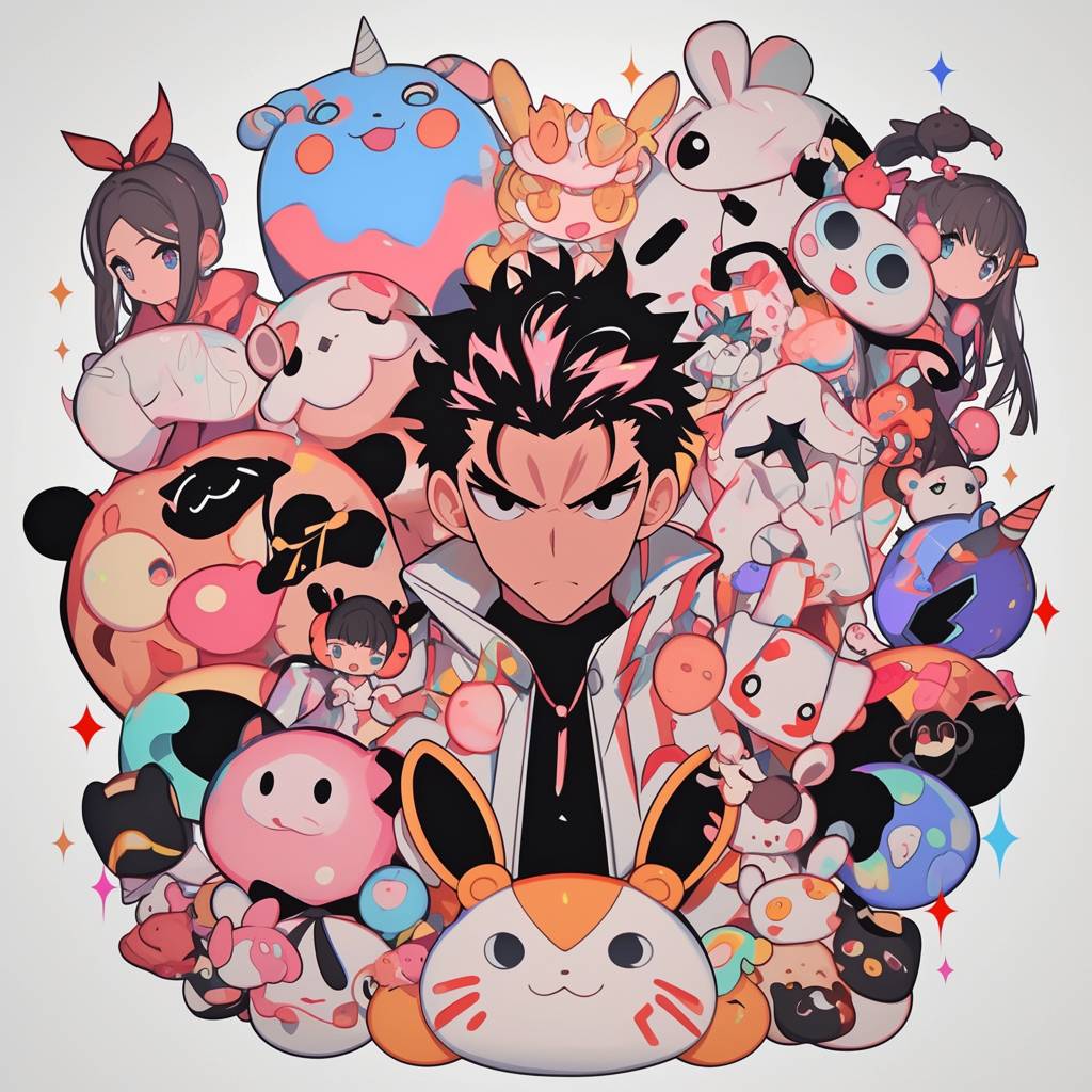 the top 10 popular anime’s and manga together at a party huge zoom out all white background studio --sref 2372198251 --niji 6 --sw 400 --stylize 1000