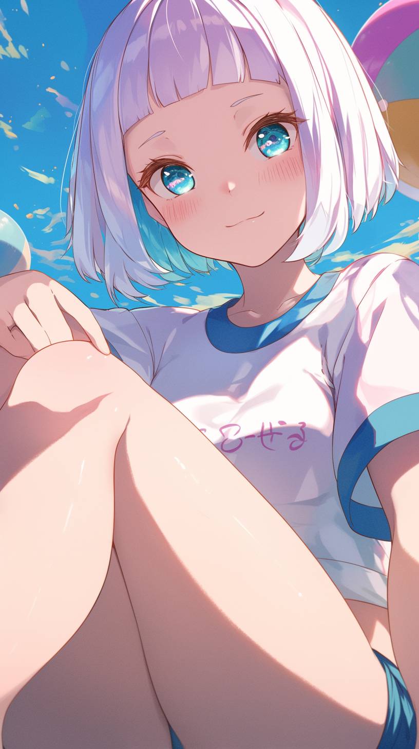 pkemon,Cute, Mesugaki, Baby face, White hair, Anime style blush,good hand and good leg,hime cut, hatching (texture), From upon, Fisheye, Looking up, Fibonacci, Gummies, blunt bangs, w_sit, Strong rim light --no poorly drawn hands,worst quality,disfigured,bad anatomy disfigured malformed mutated,ugly,bad proportions,Missing limbs,poorly drawn face --ar 9:16 --niji 6