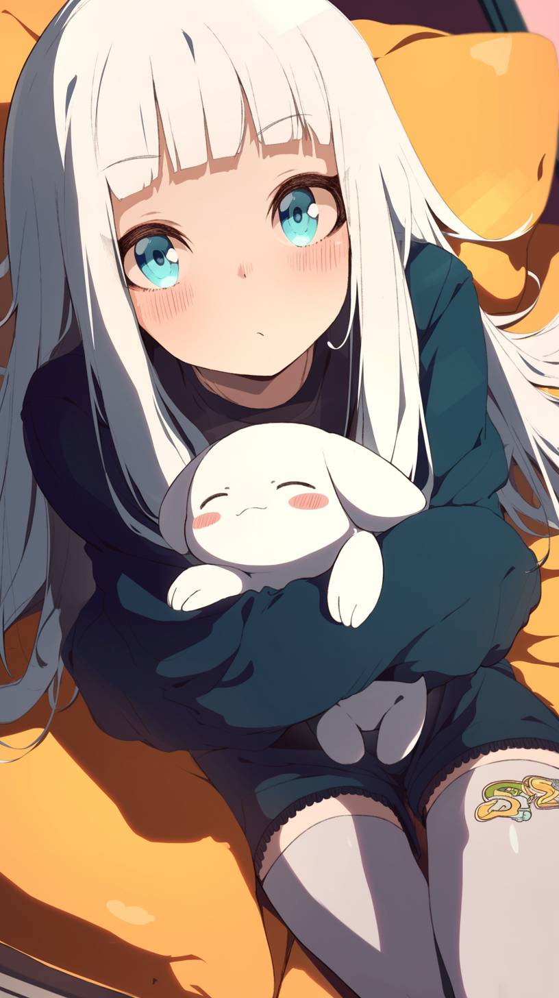 귀여운 흰머리 애니메이션 스타일 캐릭터
