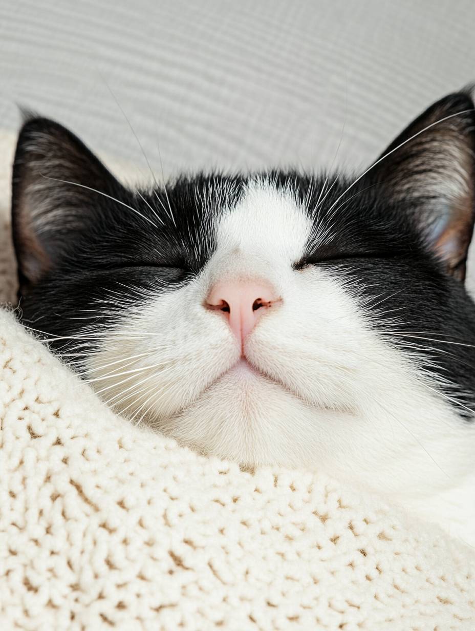 Cute tuxedo cat ip in cashmere roll --ar 3:4 --style raw --personalize kzilt9y --stylize 1000 --v 6.1