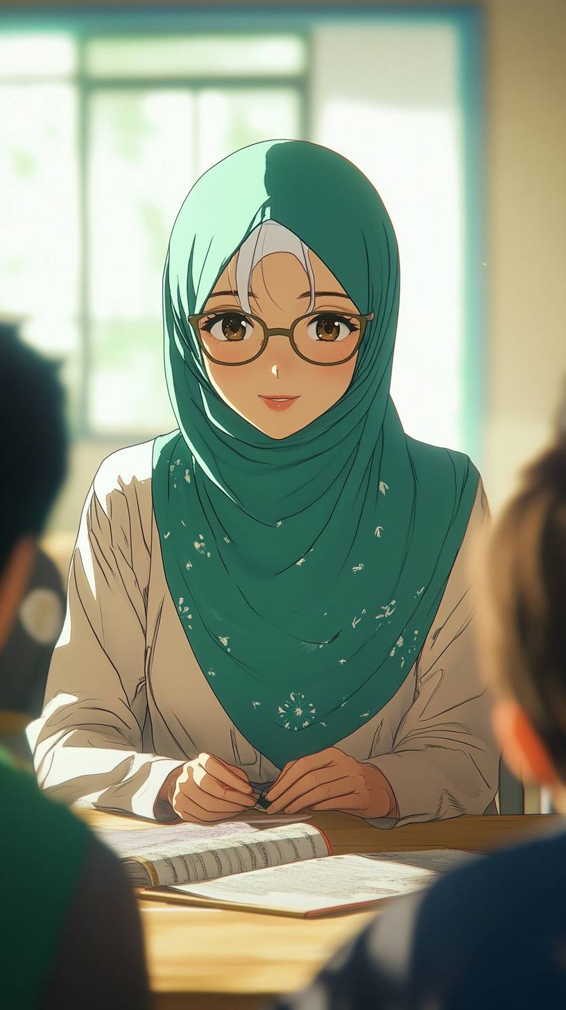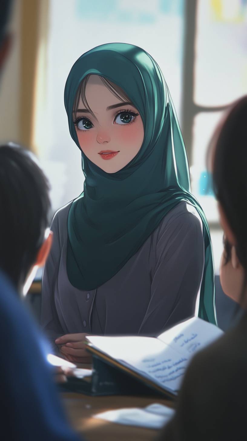 쿠웨이트 여성 교사가 학생들에게 설명하는 교실 분위기