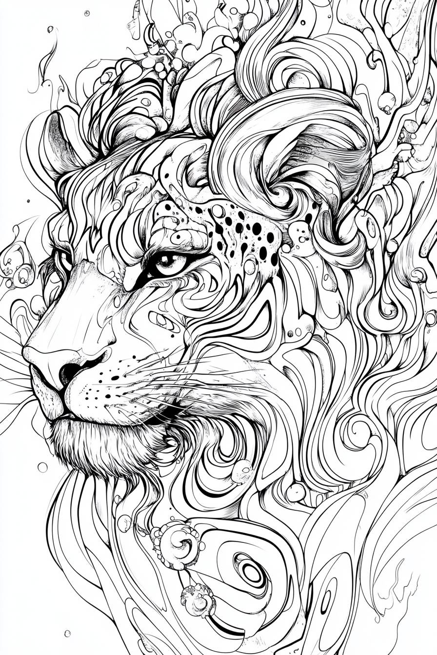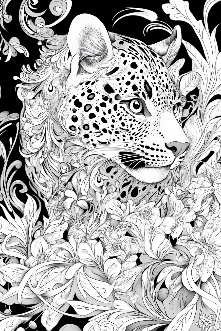 우주 표범 르네상스 벽지용 흑백 윤곽 색칠북 만들기
