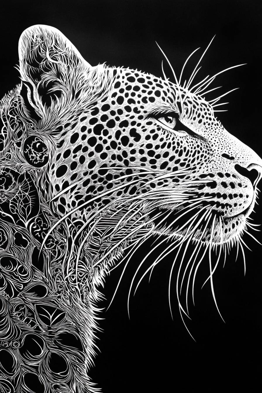 make coloring book black and white outlines for cosmic leopard renaissance wallpaper --ar 2:3 --v 6.1