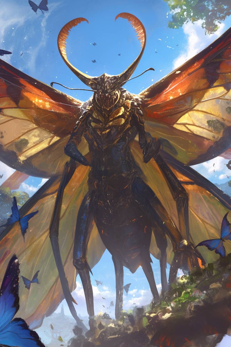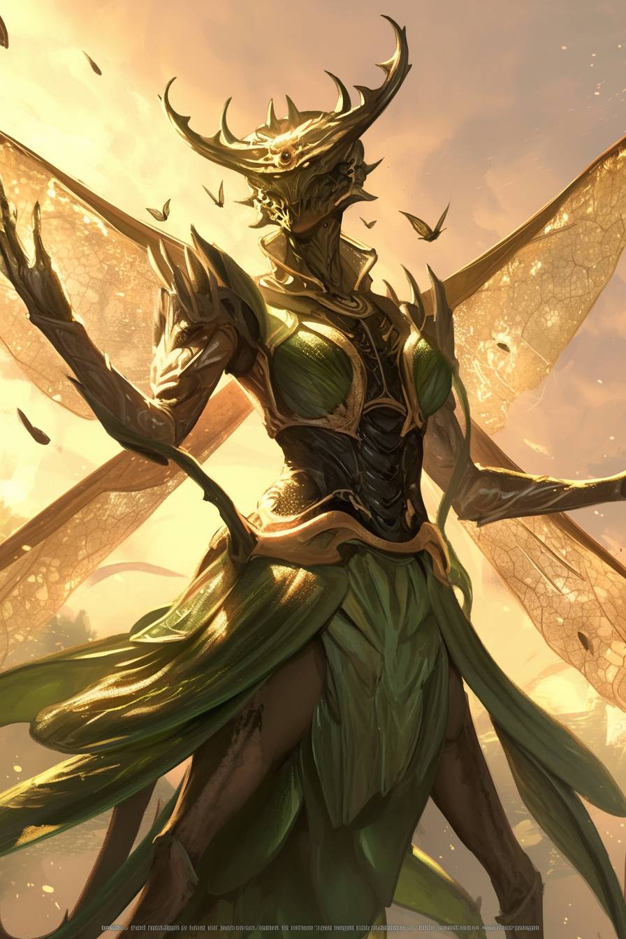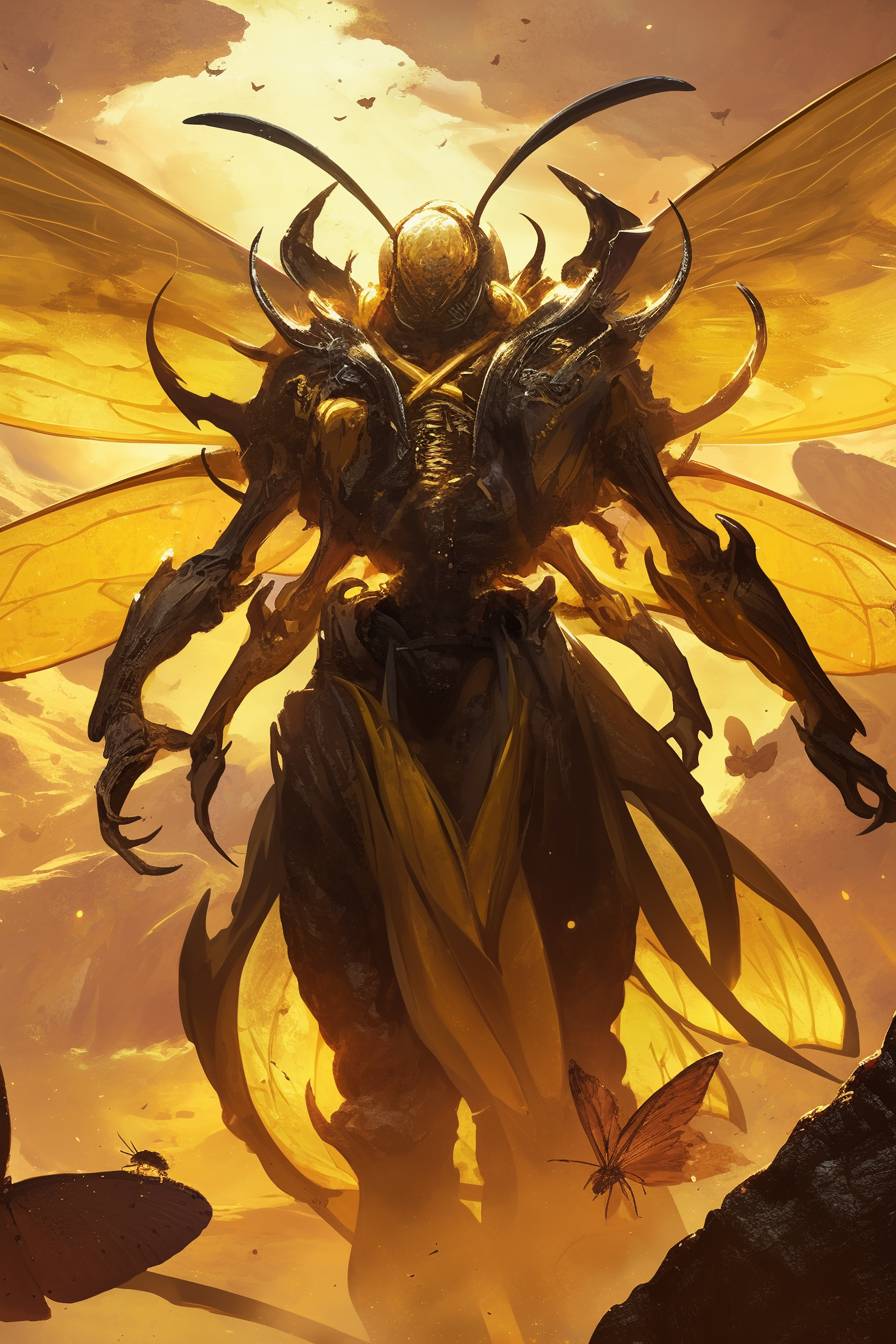 insect, MTG collector card, (wizard style border:3) victory pose, Osamu Tezuka artwork, metropolis movie poster --niji 6 --ar 2:3
