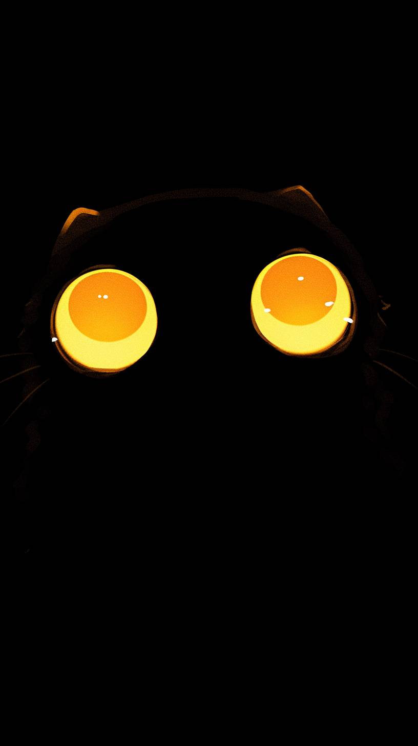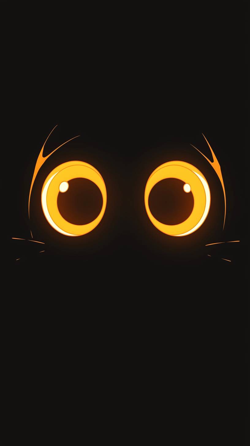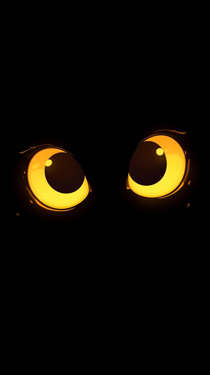 단순한 검은 배경에 중앙에 두 개의 큰 노란 눈, 귀여운 디자인.