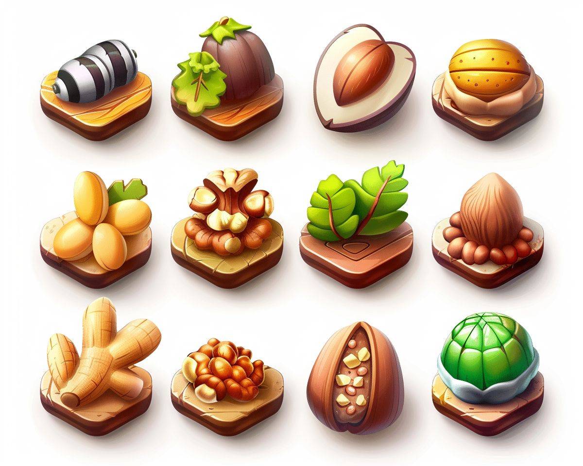 모바일 게임 3D 아이콘은 여러 견과류 버전이 진화하고 레벨을 포함합니다.