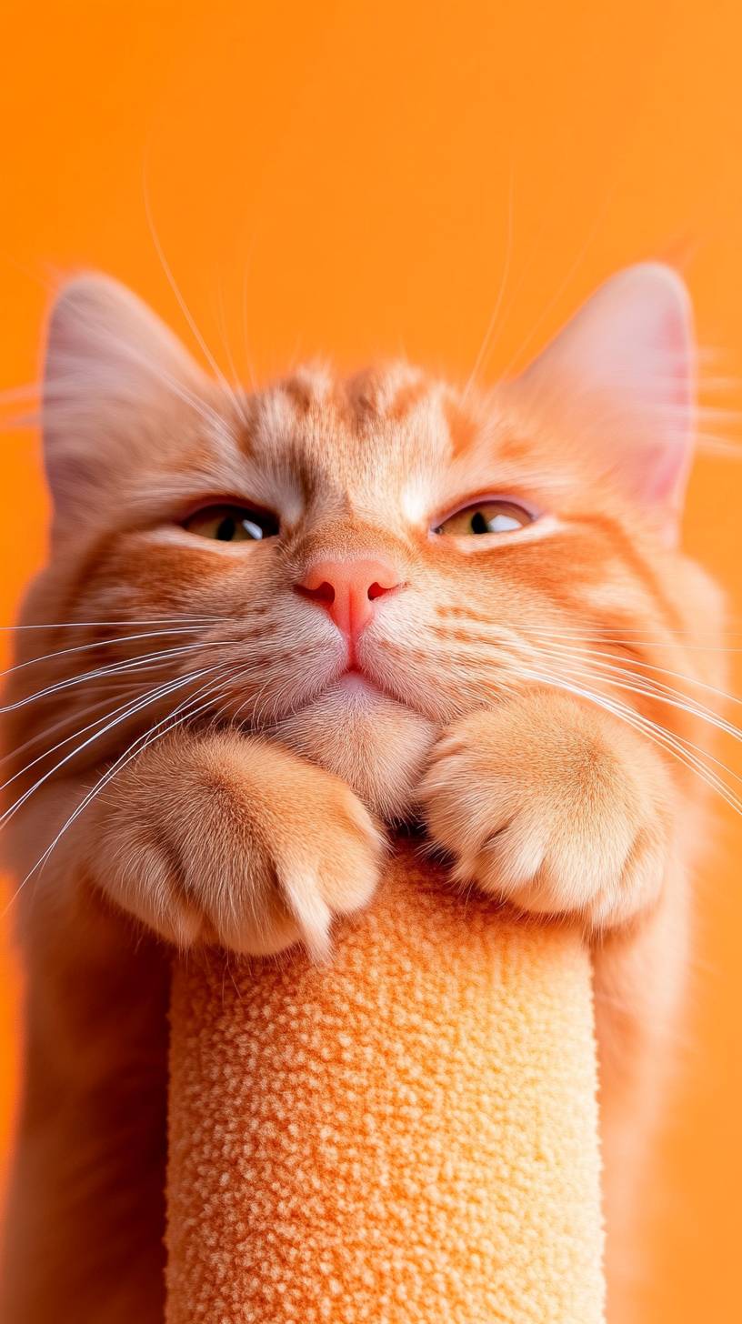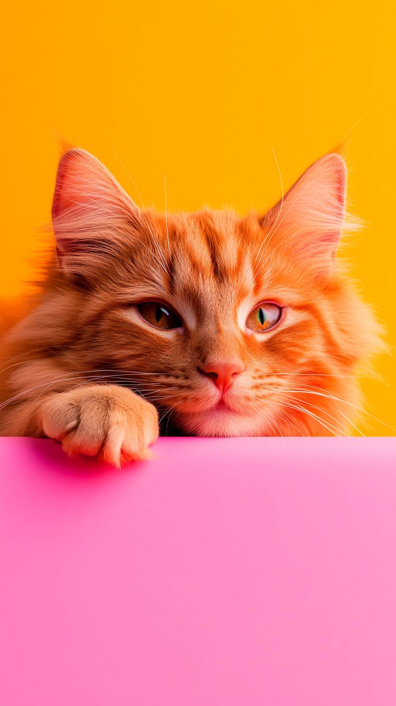 A cute cat lounging on a retro couch, with a color palette of soft pinks, creams, and oranges. The muted, vintage colors give the scene a cozy, old-fashioned feel, while the cat’s curious expression adds a playful touch. --ar 9:16 --style raw --personalize uf58swq --stylize 1000 --v 6.1