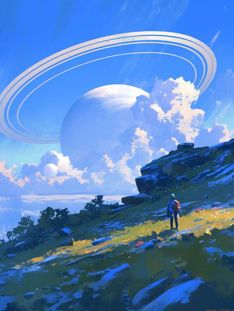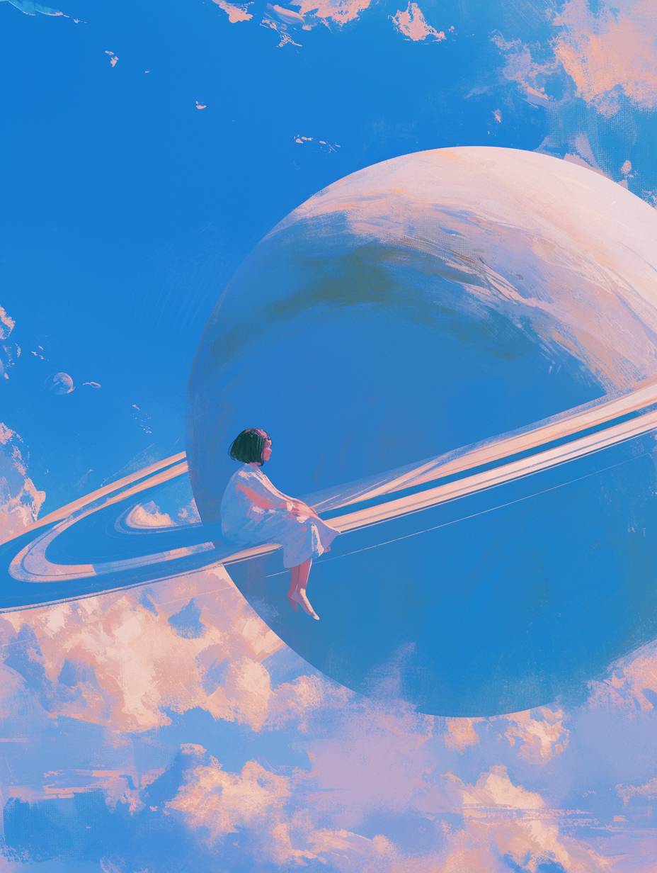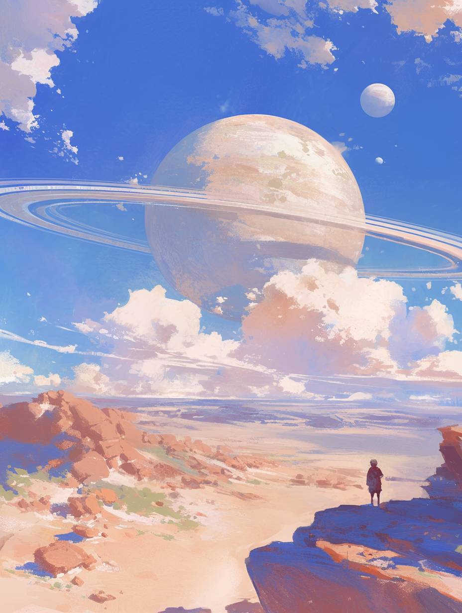 put a big saturn planet in the blue sky --ar 58:77 --niji 6