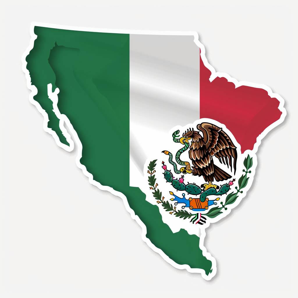 [Mexican flag sticker in the shape of Mexico, white background]::7 [detailed matte finish, hyper realistic logo]::3 --s 20 --v 6.0