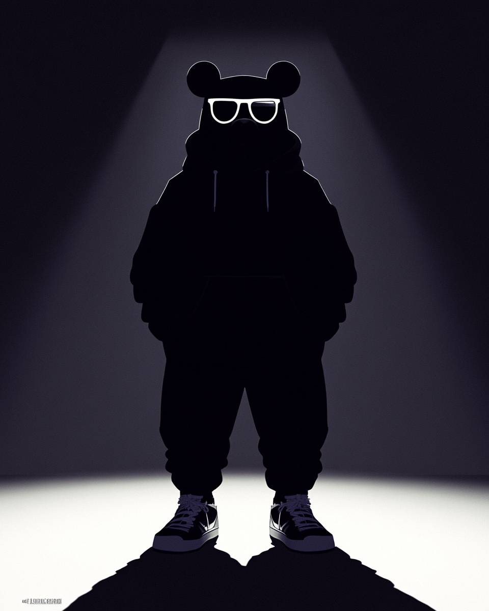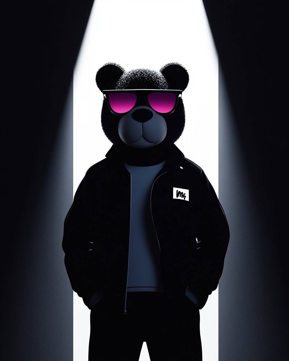 cartoon bear Streetwear and sunglasses, sleek, glowing, appealing, angled, rule of thirds, --ar 4:5 --sref 1028944801 <https://s.mj.run/dq2eMCuigR0> --sw 75