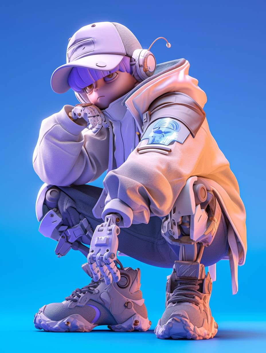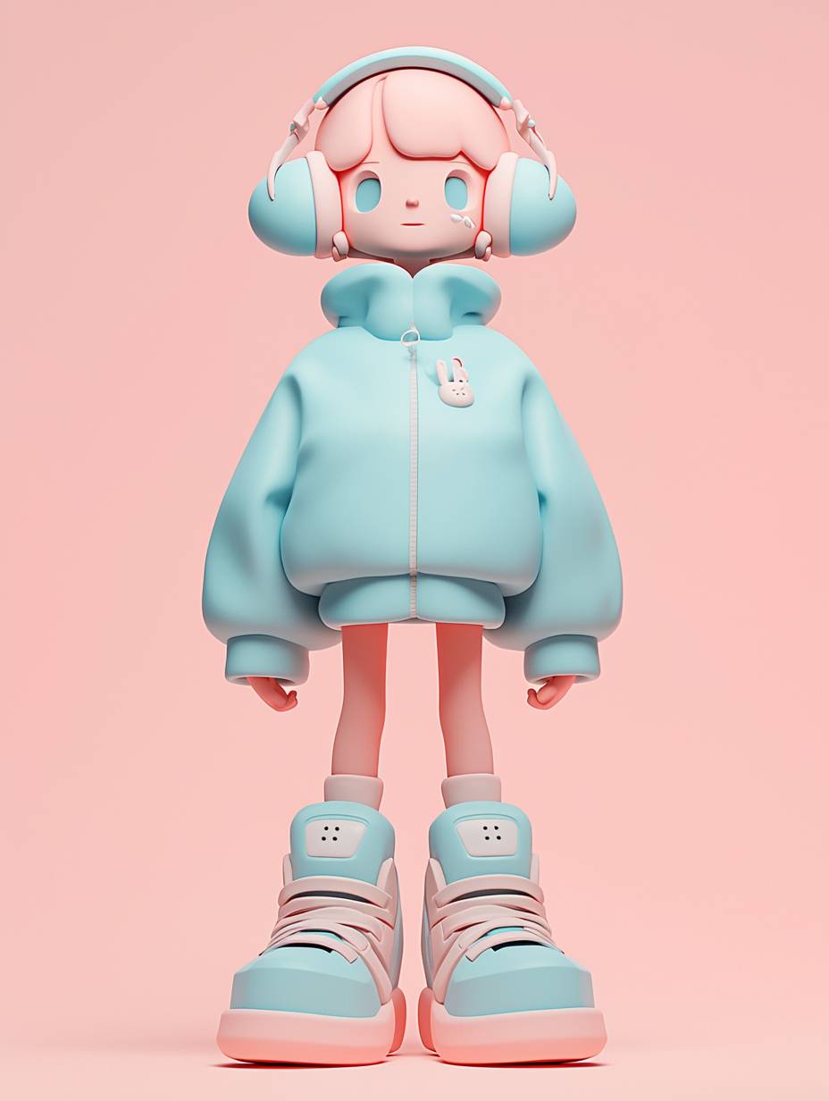 A cartoon character,A sculpture of art, looking at viewer, bored pose, full body, fine luster, clay materials,The future feels , Clean background, Natural lighting, 3D toy, IP by pop mart, mockup blind box, Edge light, front view, octane render, blender, fashion trend, art,hyper quality, Ultra HD, 8K --ar 3:4 --niji 6