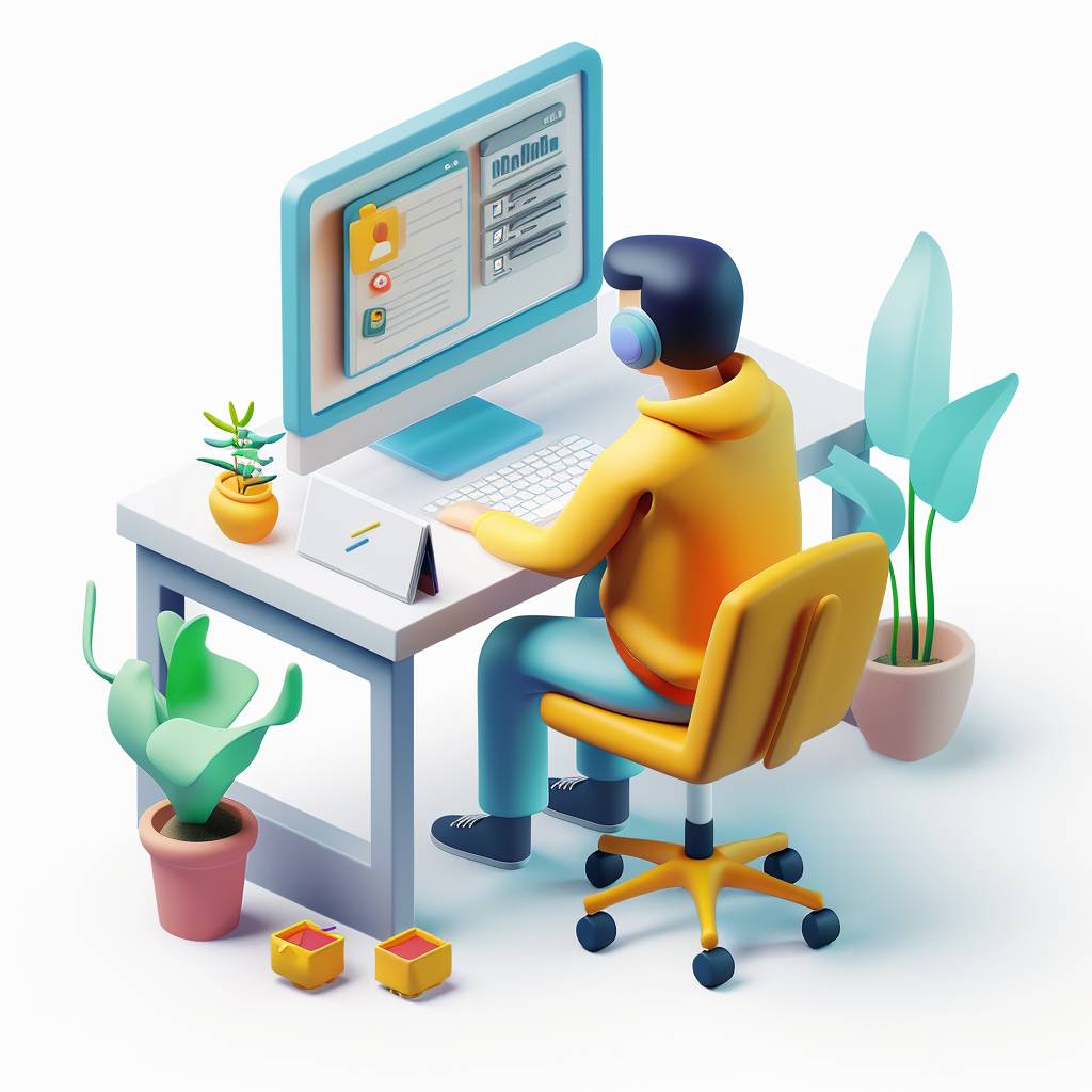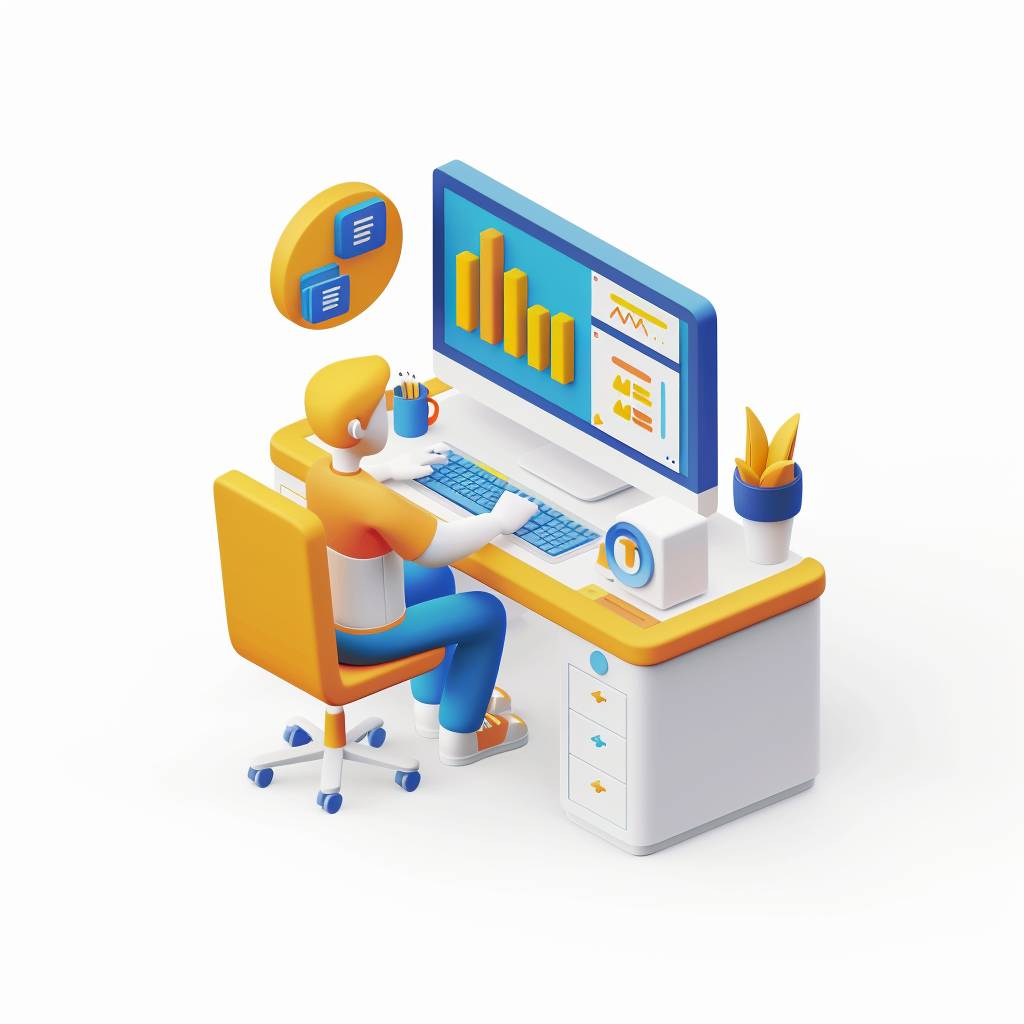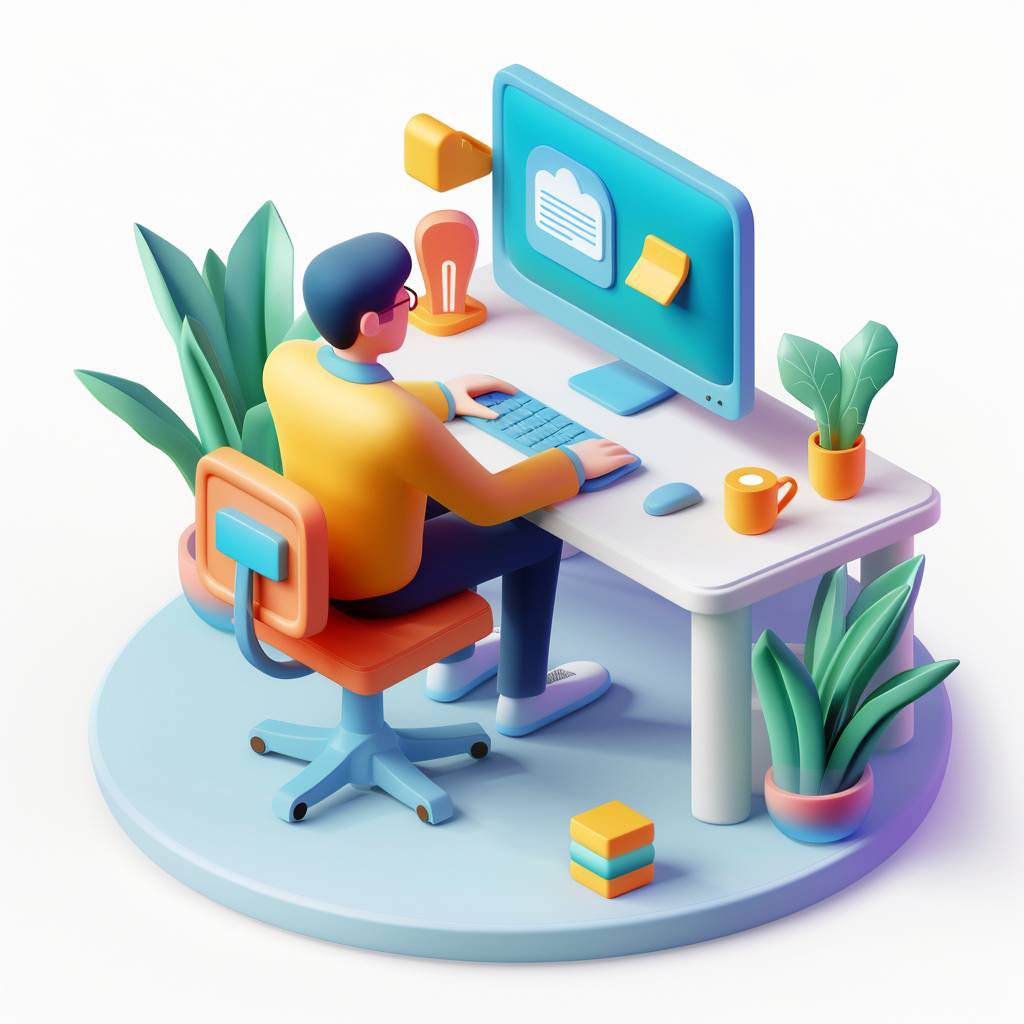 A 3D isometric illustration of a user making important decisions at a computer.