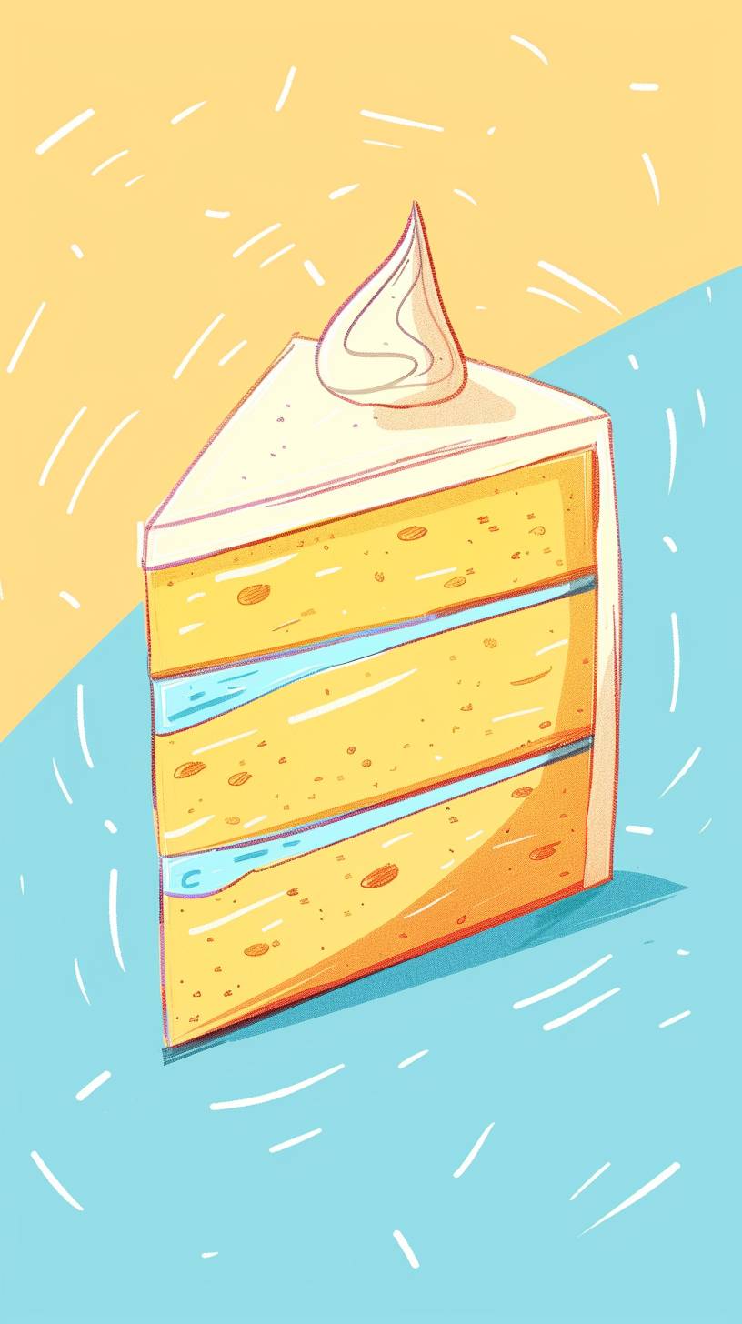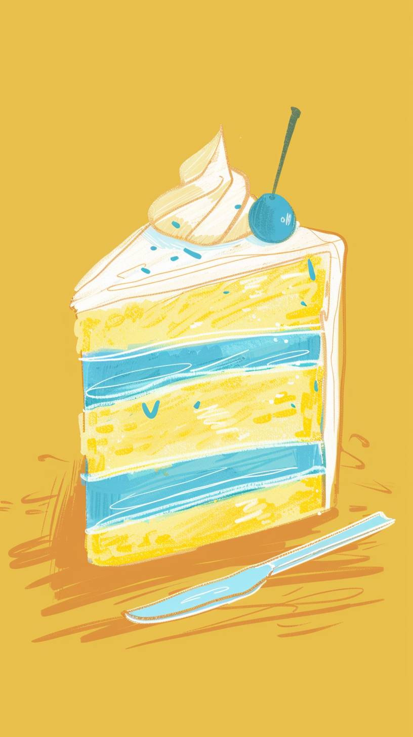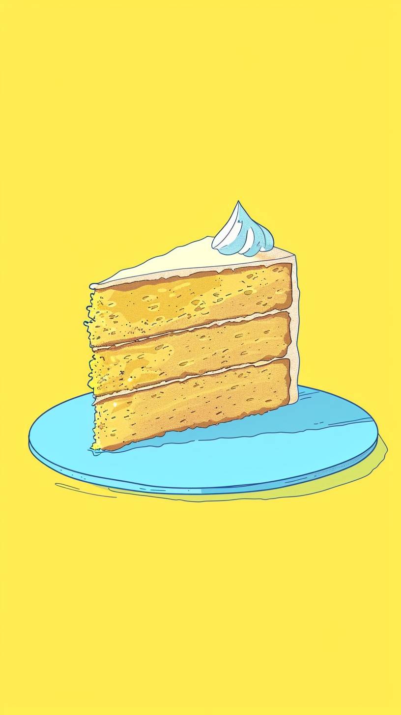 a simple cartoon drawing of a piece of cake that looks like it would come from the Adventure Time show using pastel yellow and blue shades --ar 9:16 --v 6.0