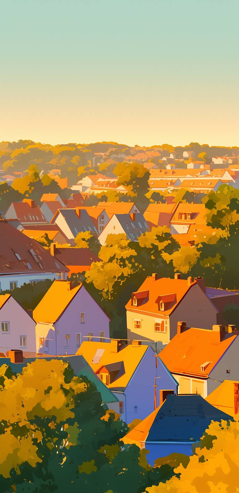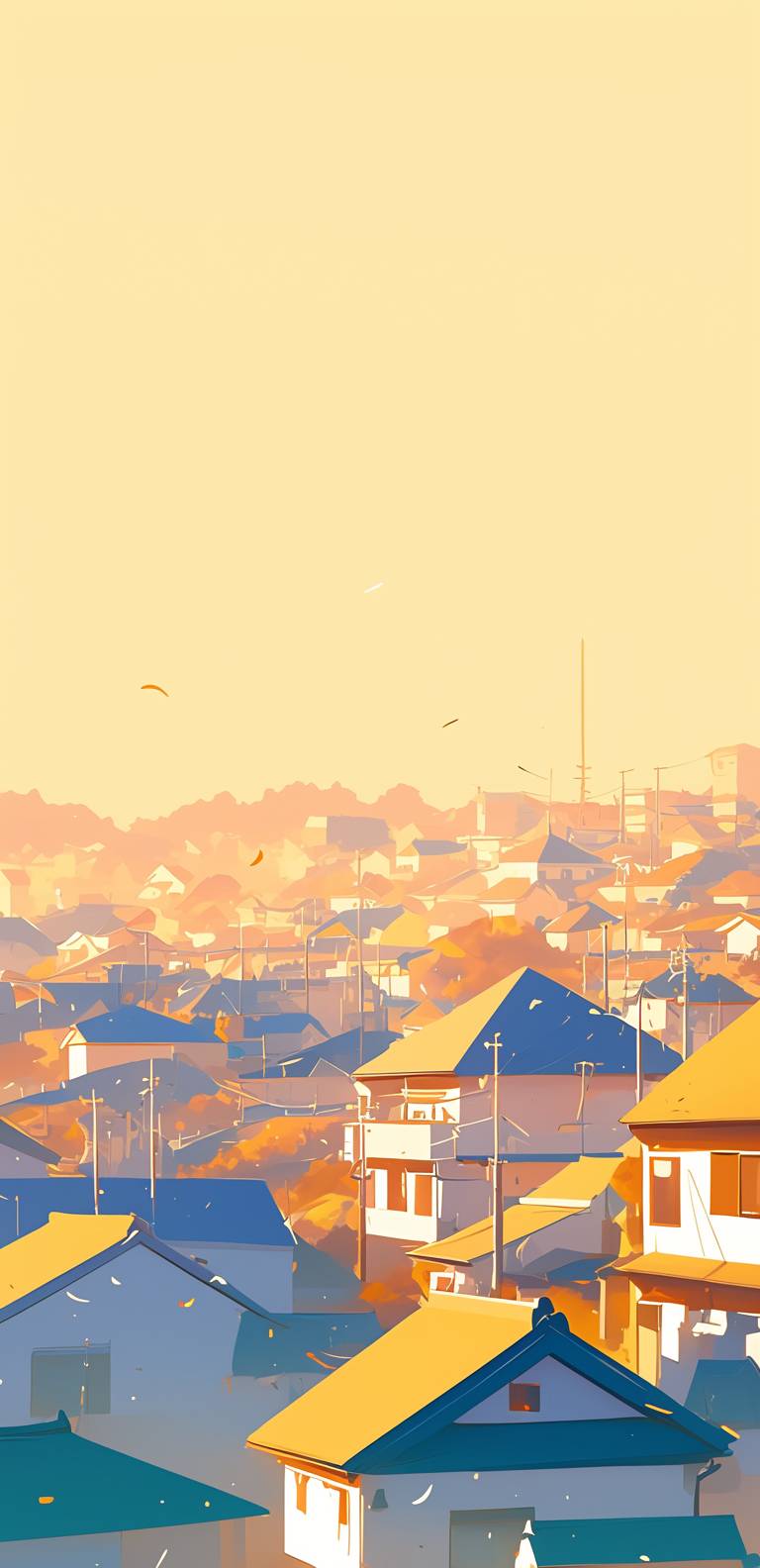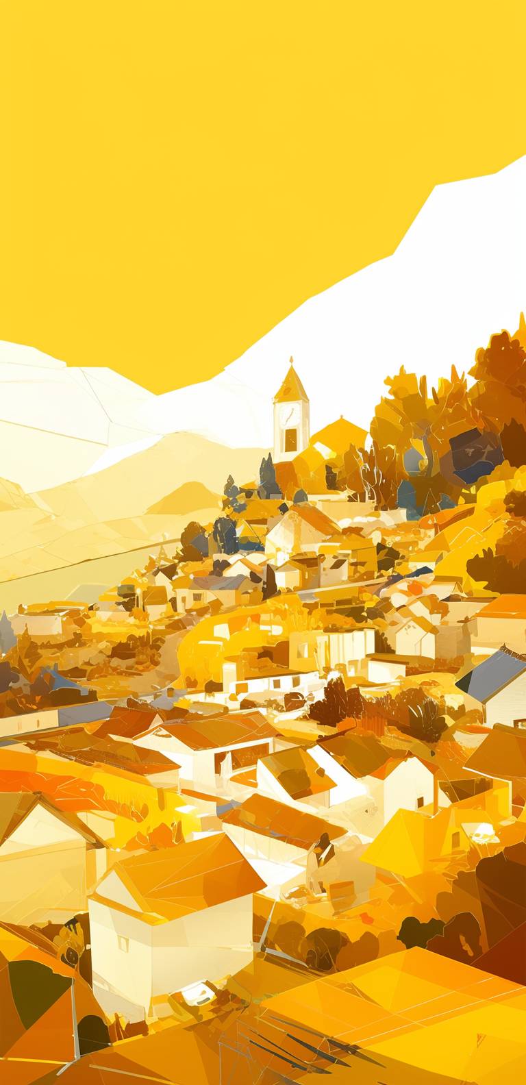 Transparent outline of low polygon white small village, morning atmosphere, yellow color matching, Paper Cuttings illustration style, hand drawn illustration, minimalist plane style --ar 18:37 --stylize 50 --niji 6