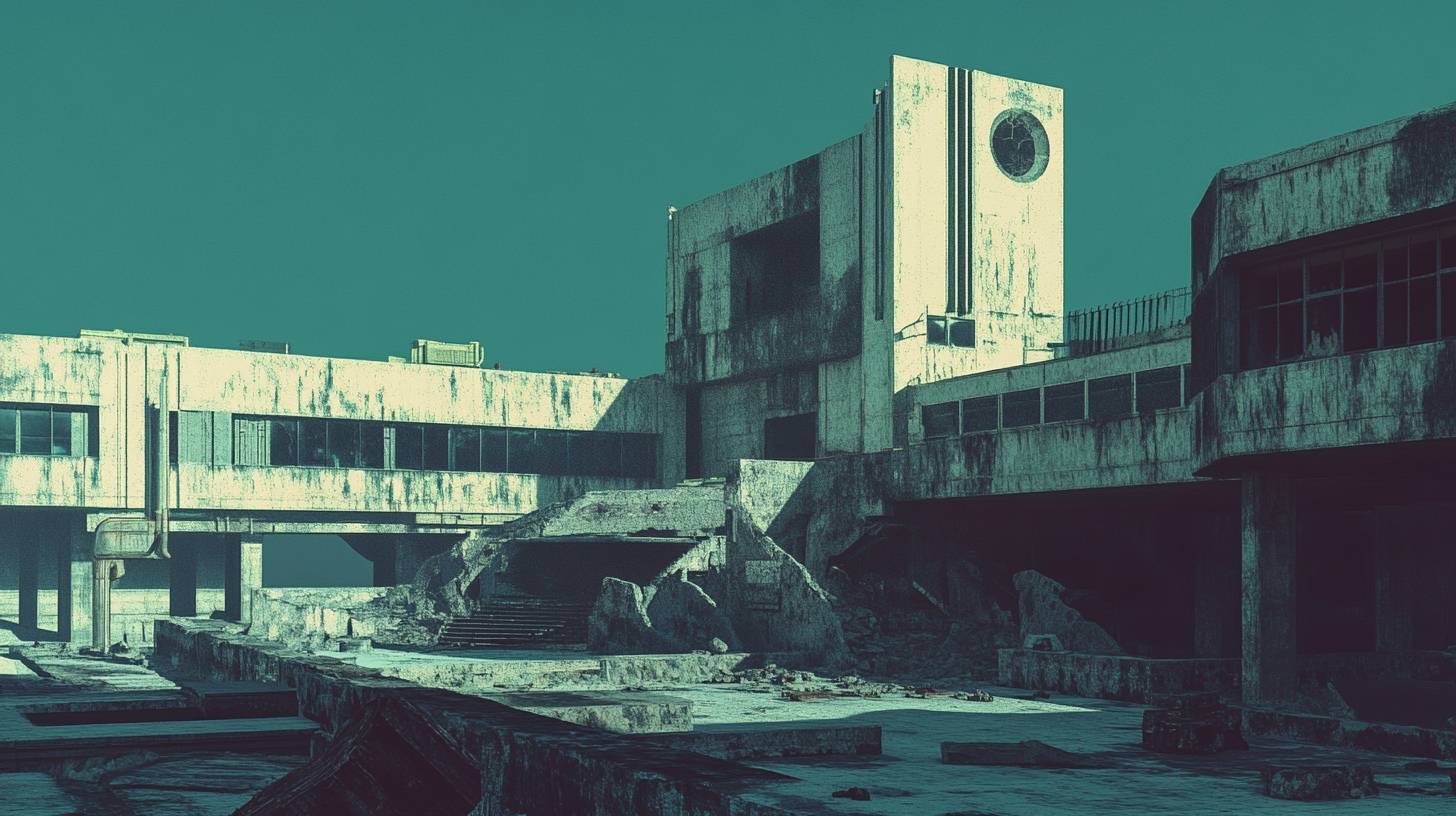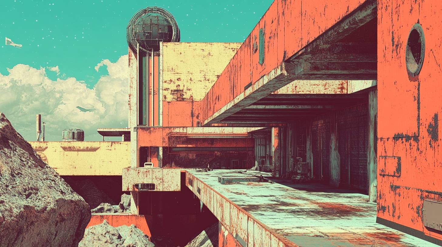 [SUBJECT] in a Retro-Futuristic Dystopia setting, blending 1950s aesthetics with futuristic elements, using muted, desaturated colors of [COLOR1] and [COLOR2] to convey a sense of bleakness and decay --ar 16:9