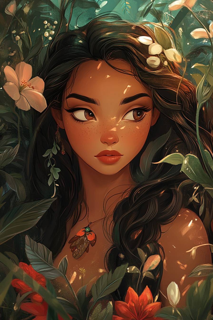Snow White, Elsa, Moana, Merida, Belle, Mulan, Tiana, Ariel, Pocahontas --ar 2:3