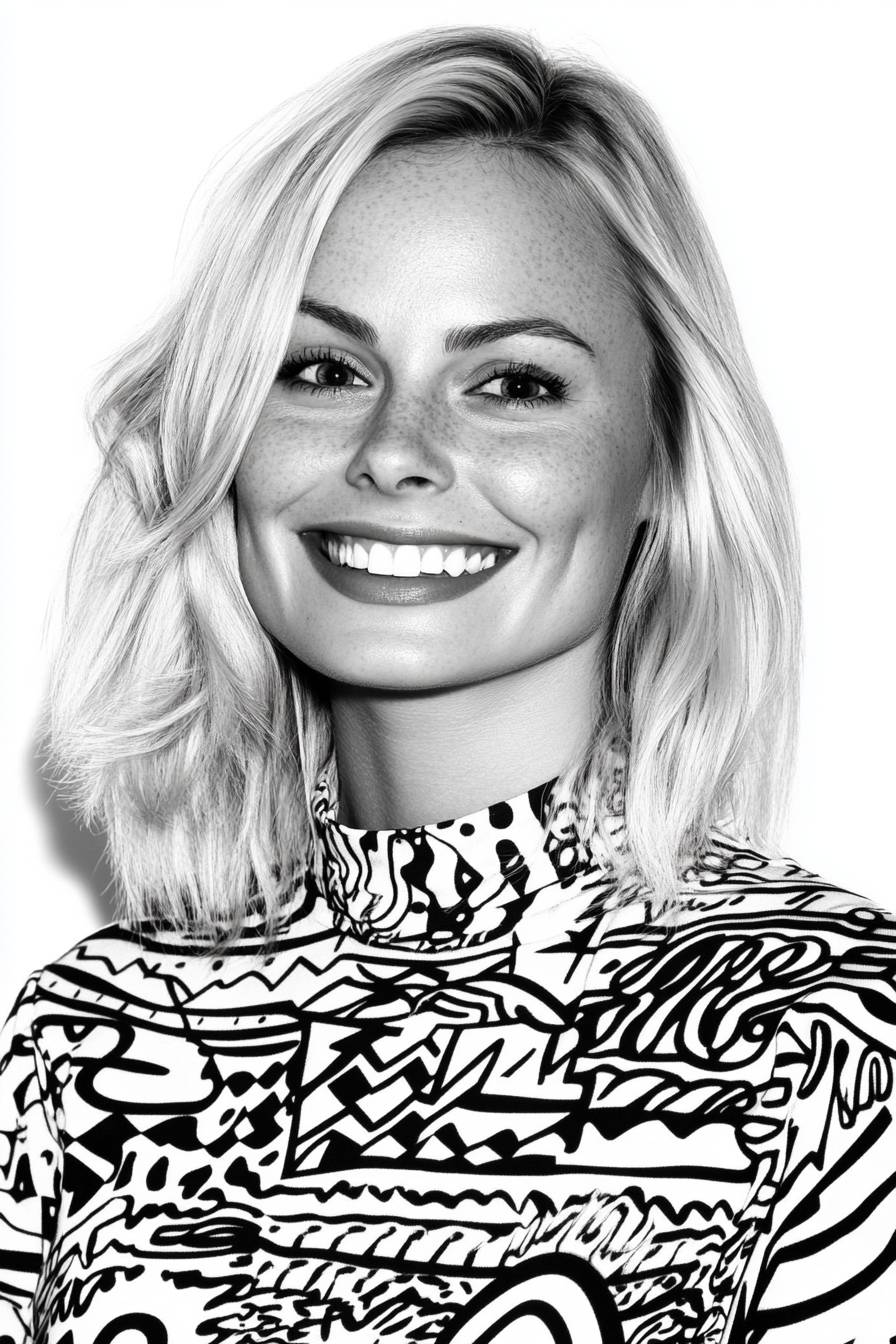 Margot Robbie smiling in an ID photo. --ar 2:3 --v 6.1 --sref 70000