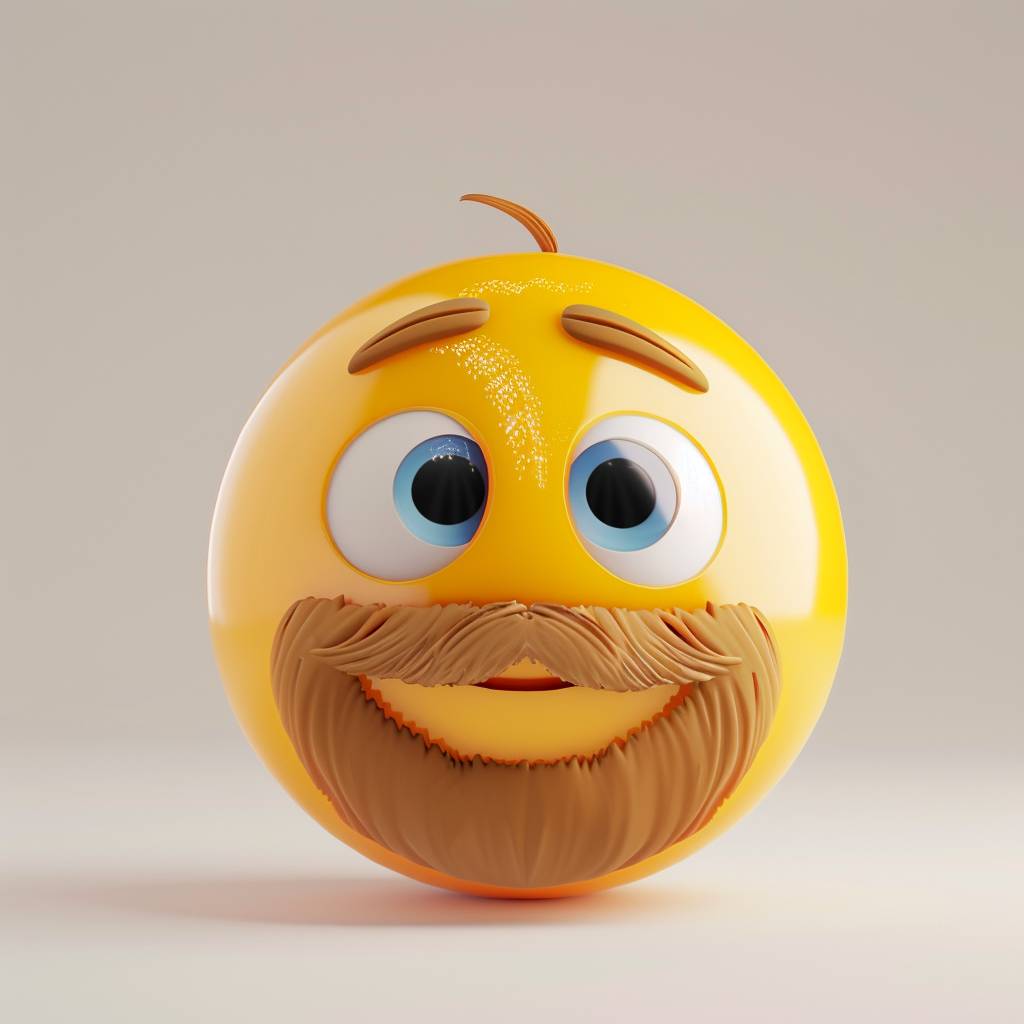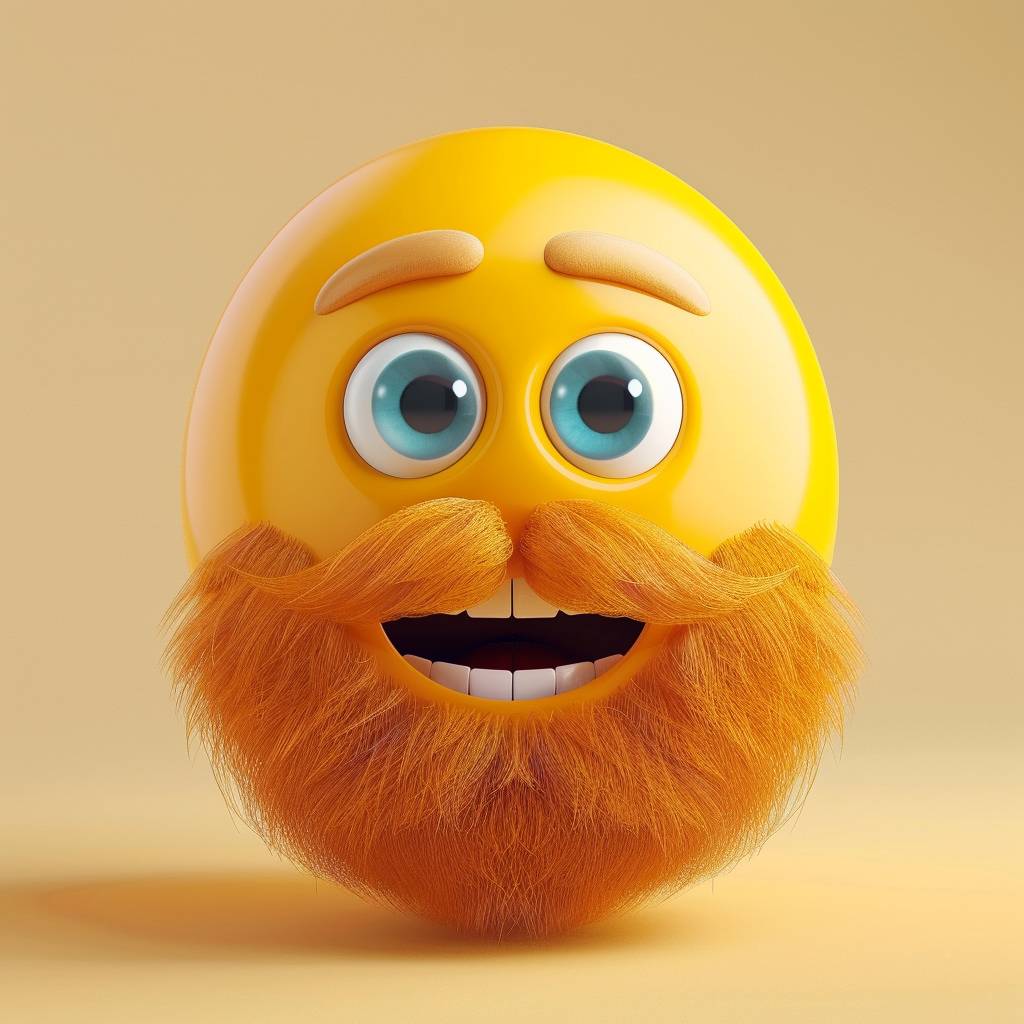 A bright yellow emoji [eyes color] and [beard/hair], [expression], centered against a plain light background, high-resolution, detailed facial expressions, expressive eyes, realistic textures.
