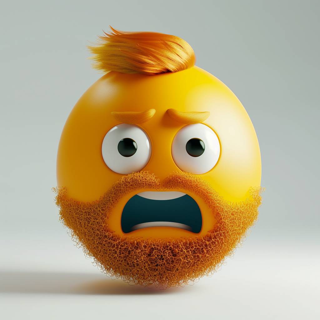 3D render of the bright yellow emoji [eyes color] and [beard/hair], [expression], centered against a plain light background, high-resolution, detailed facial expressions, expressive eyes, realistic textures. --v 6.0