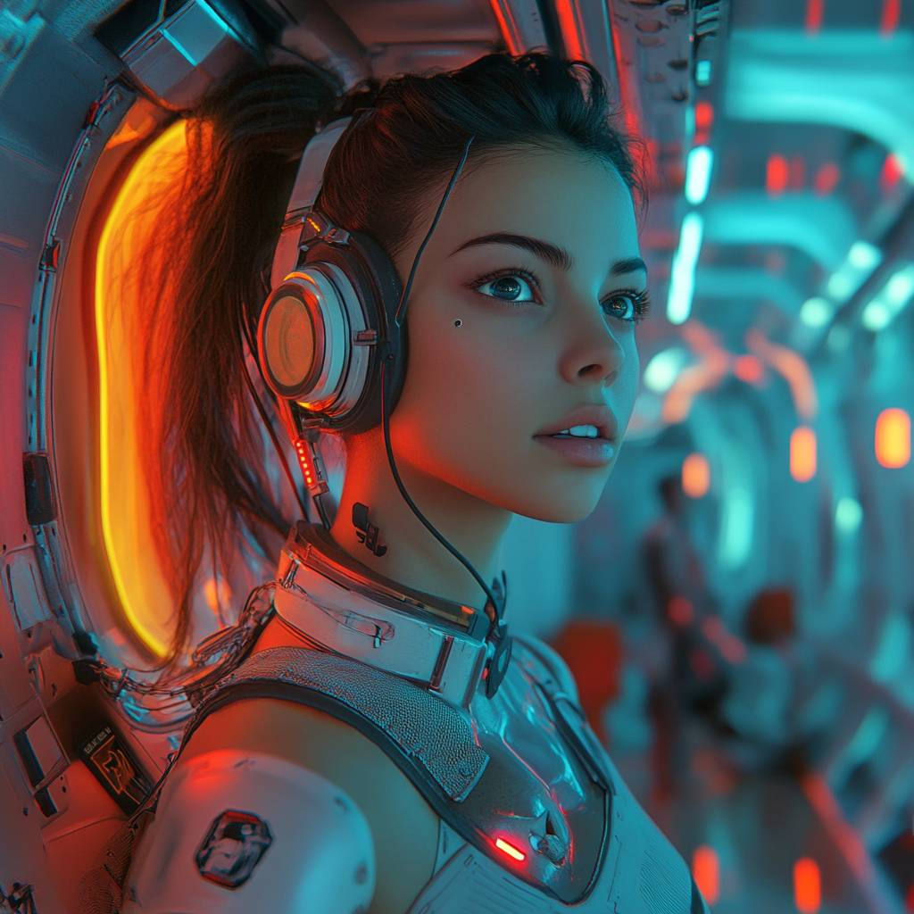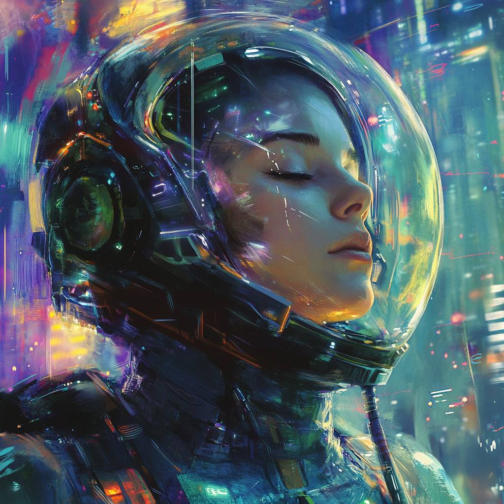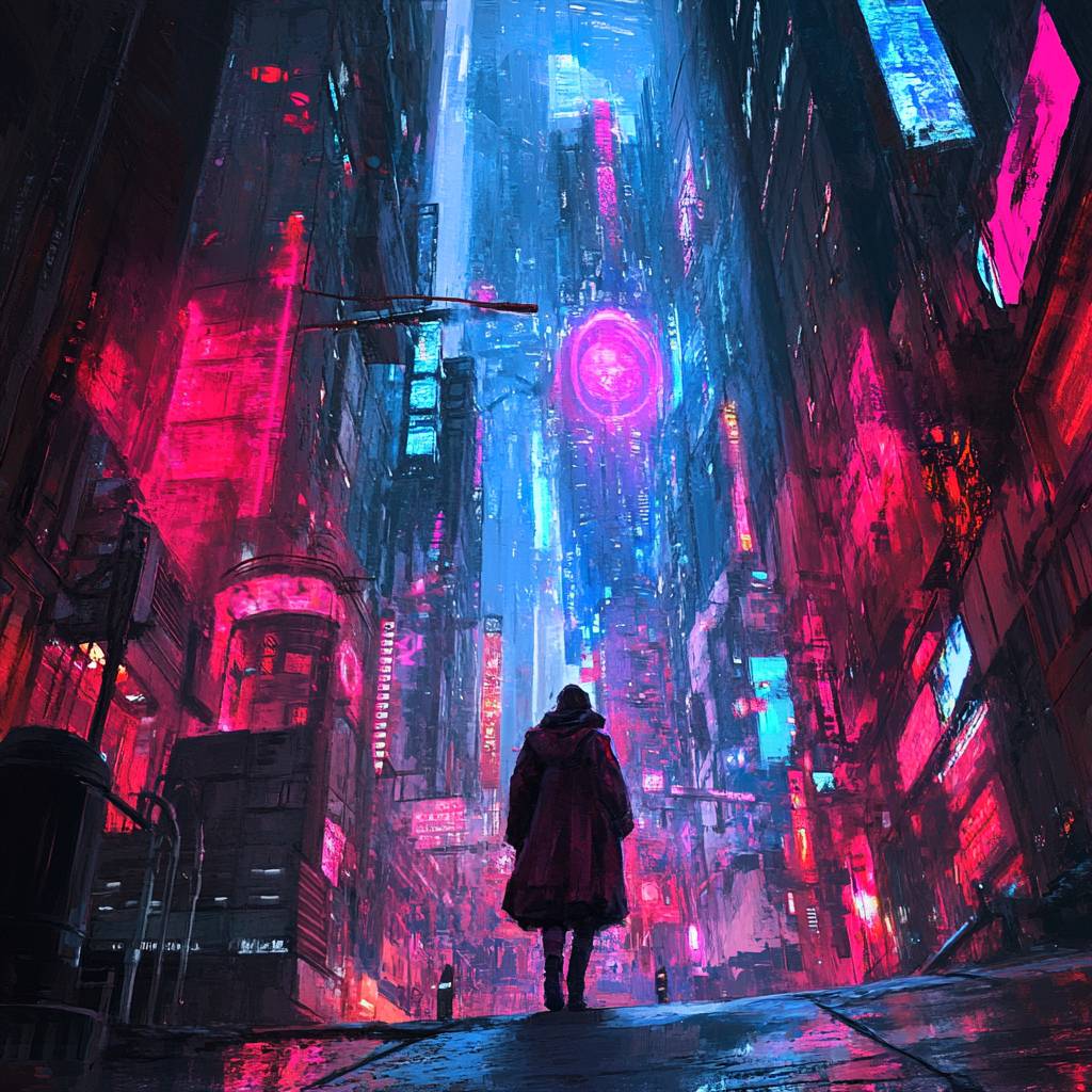 Sci-fi dystopia style, bright colors and high contrast