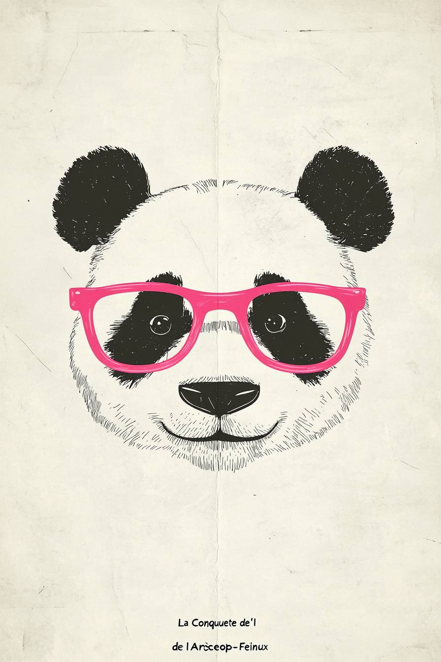 A cute panda wearing red-framed glasses in a minimalist drawing